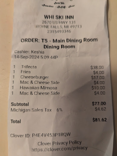 Read moreSo I drive past the whiskey inn twice a day, six days a week and have always wanted to stop.I am a truck driver so I cannot stop because I have a semi.Truck I live east of g**, so it is about a 45 minute drive. I went online, looked you up. Looked at the menu sent my son to the restaurant to get takeout. So we could eat your food while watching the Lions game. They refused to sell me 90% of what is on your menu? Because evidently, you have a separate takeout menu, which did not appear in the Google search The person Working There became very combative and nasty when I asked for an explanation. I asked a simple question. What is the difference? If you cook a slab of ribs which are precooked, by the way, put them on a plate for a customer sitting in the restaurant or putting them in a box to hand to a person standing at the counter, there is 0 difference. I asked to speak to a manager and was denied that opportunity. It will take a lot on your part for me to ever attempt to try your restaurant again.And I will tell every person I know and in gailard, I know a lot of people to never come to your establishment unless this is somehow made right shame on you. And the only reason I gave you one star is because zero stars is not available. Again...