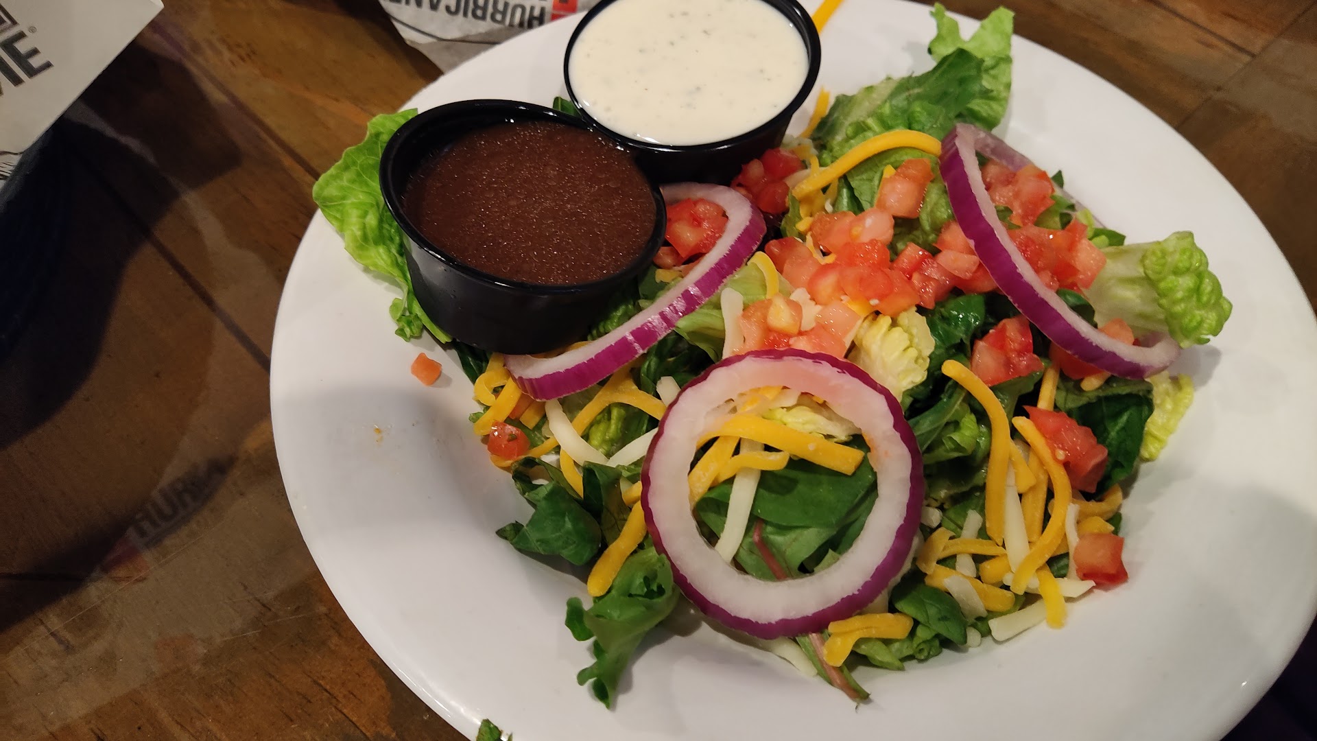 Read moreWent for dinner around 6-7, on a Monday, super slow inside just a game of poker going on as like 2 other tables. They had a server with blue hair taking care of them and boy do I wish she took care of me too. We gave our server (who never mentioned her name) our drink order, she brought the drinks and we ordered food, and that was when our waitress stopped caring lol. 15 minutes later she drops our food off, both me and my girlfriend need more drinks. Our waitress ran circles around us avoiding eye contact or asking how are food tasted, if we wanted refills. So we both ate our food with no drinks, I ran out of bleu cheese before I was halfway done with my wings (a cardinal sin), and when we’re almost done I see I manager looking guy and his cook walk out from the back. Our obviously empty drinks were sitting on the end of the table just begging some waitstaff to fill it up, and when the manager started walking our way I got a sense of relief. Syke !! He went to the the table next to me who apparently were regulars and ignored us like our server. Food was good, service was terrible. Moral of the...