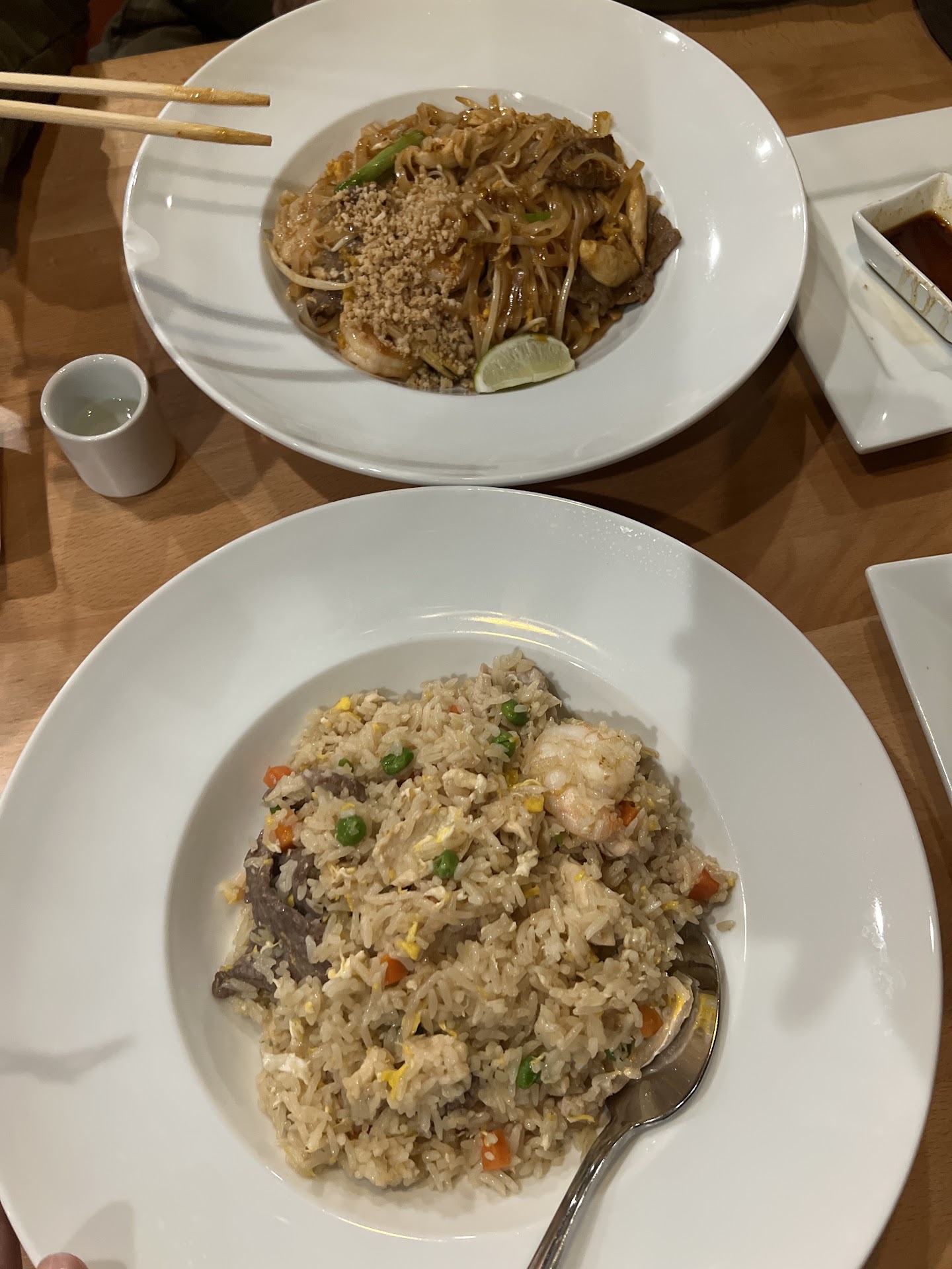 They even talked me into switching to shrimp, assuring me that the chicken would still be just as bad if I asked for a new one. Unfortunately, I also asked if they could add rice since we couldn't eat the original dish, and to my surprise, I was charged an additional $3 for it! This left me baffled, especially given the poor quality of the meal I received.