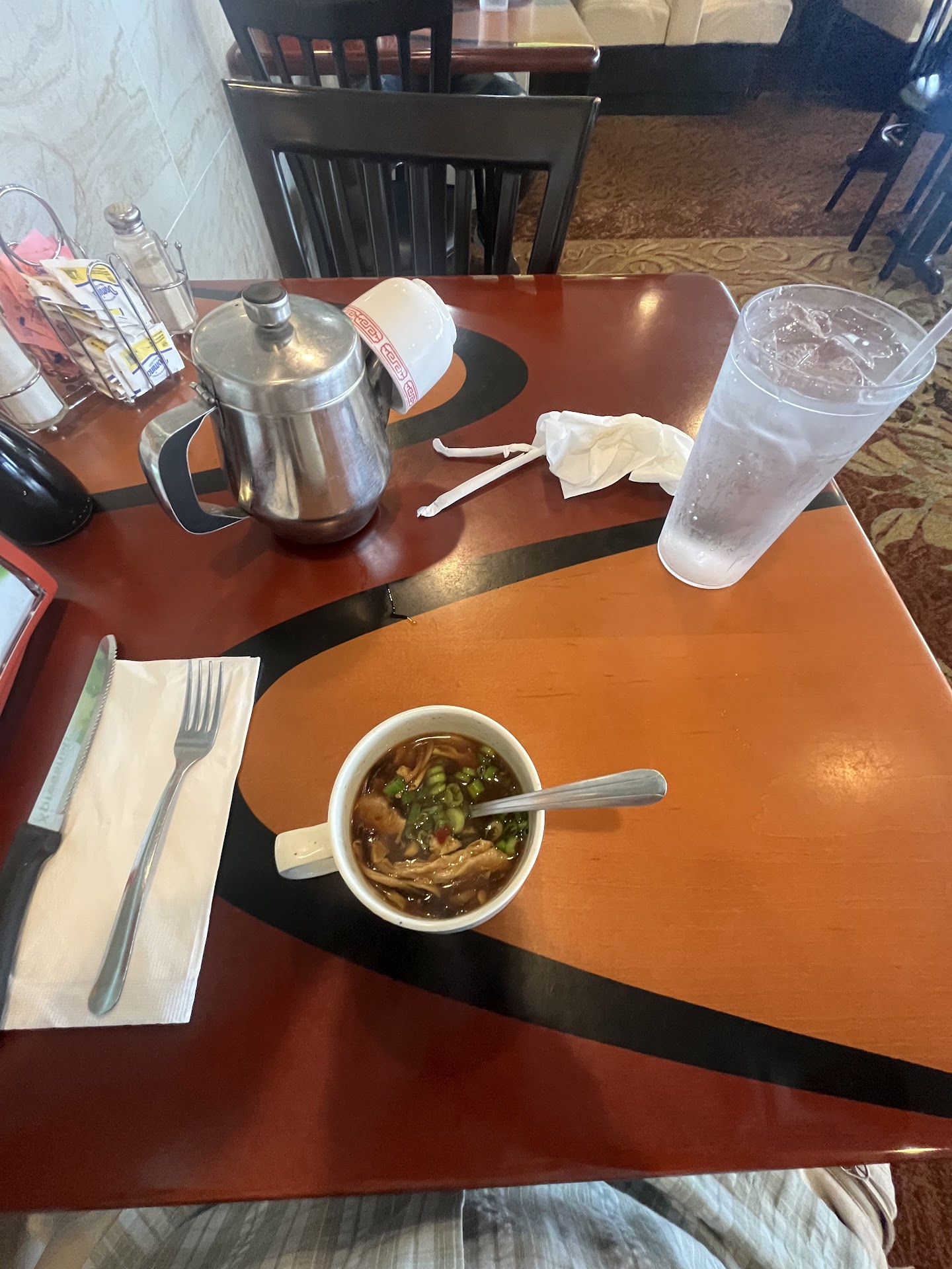 Read moreAs soon as I walk in I wanted out..I was with my disabled brother and it was a production just to get in the place...so we stayed...I should have gone with my gut...no host or hostice in front to seat us. Some guy came walking..talking at us, I could not understand what he was saying and passed us. I thought it was just another person eating there talking to a friend he may have been with or himself, when he continued to shout from accross the room the same thing. Then I realized he works there & was talking to me, telling me to sit anywhere I want. Once he realized my brother had a walker as we made our way to a table that was very close to the front & the food so he ( my brother) did not have to walk far to the food. This man rushed over and insisted we sit in a back booth so the walker would not be in the way of other people. I tryed to explain the walker folds up & walking a far distance is an issue for my brother .The back booth was too far..he did not care..he was pushy & rude..."u sit..u sit here...no in the way...no bother other people"!!! The place was run down..we sat by windows that were soo dirty the glass was yellow..our table was wobbly...food was cold...the consistency of the Egg Drop soup was too thick, the noodles for the soup were stale. Everything about the place was wrong. I love going to all you can eat Chinese Buffet's, my regular place is in Deerfield off Fed and my brother & I are there at least 2/3 times per week..The place in Deerfield has no problem with hanicap patrons, they have it set up for folks in wheelchair's, scooters, walkers ect...but I made a move to Boynton and needed to find a new place. I took a gamble and went here...MAN What A Shock...how this place is still serving food is beyond me. Never again. The only way to describe this place in one word......