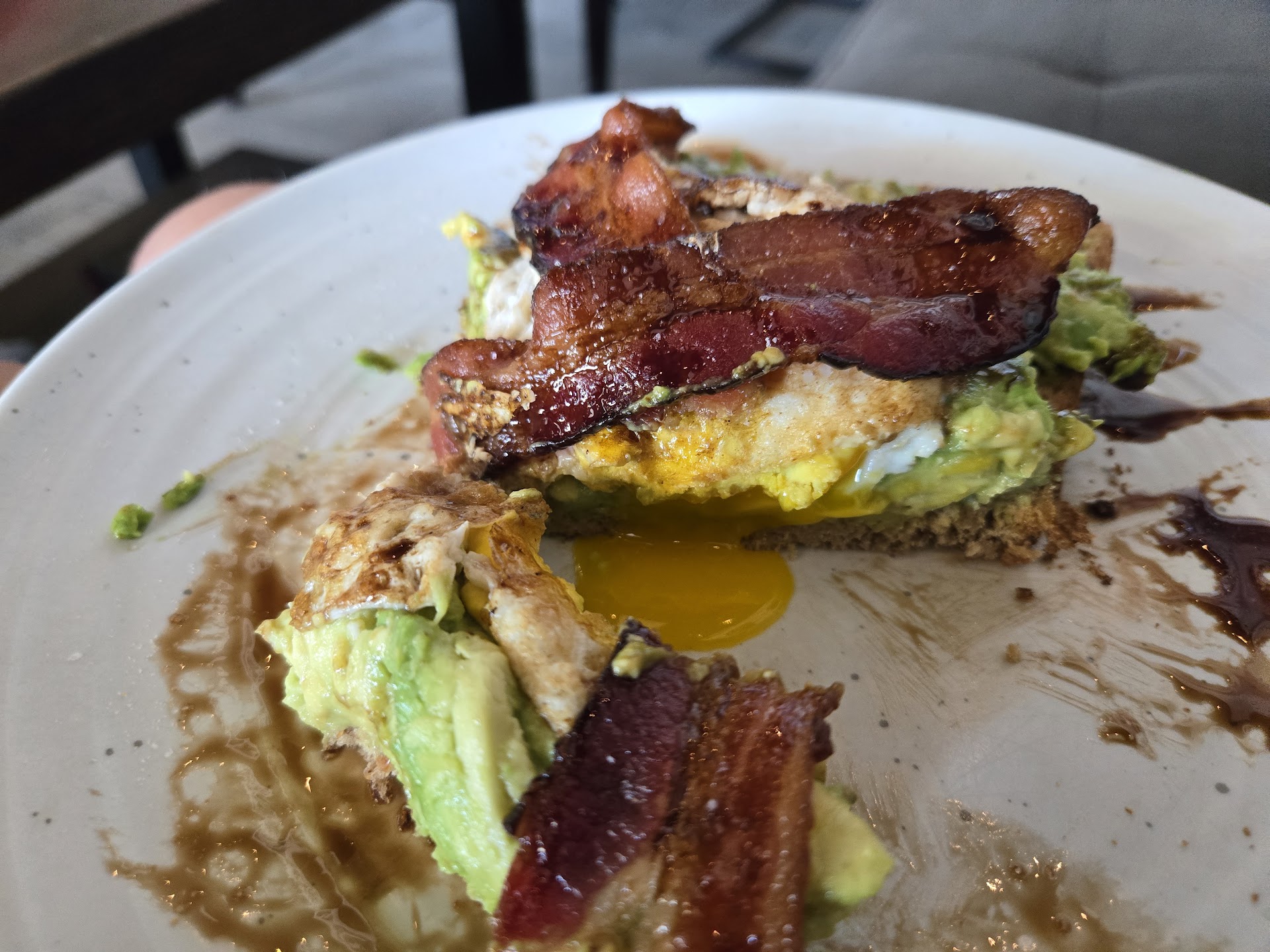 Read moreA weird eclectic mix of hippie, surfer, modern coffee shop, and rastafarian... failing at being any, left having an identity chrisis in the chaos of misplaced furniture. If the cashier is going to handle food, then she needs to put gloves on. She picked up and served cookies without doing so...hands only! not using the tongs! .. after taking payment and working the cash register. Later, she put on black gloves.. but did not change them between working the register, picking up used dirty dishes, and serving fresh food. An order of 2 bacon, egg, cheese on brioche and 1 avocado toast took OVER 30 minutes, so we asked how much longer and were told 3 more minutes .... finally after 6 or 7 minutes the egg bacon cheese on brioche showed up - a few minutes later, the avocado toast. We ordered the Avocado toast with a fried egg over hard. The egg was runny. Had to have it redone....