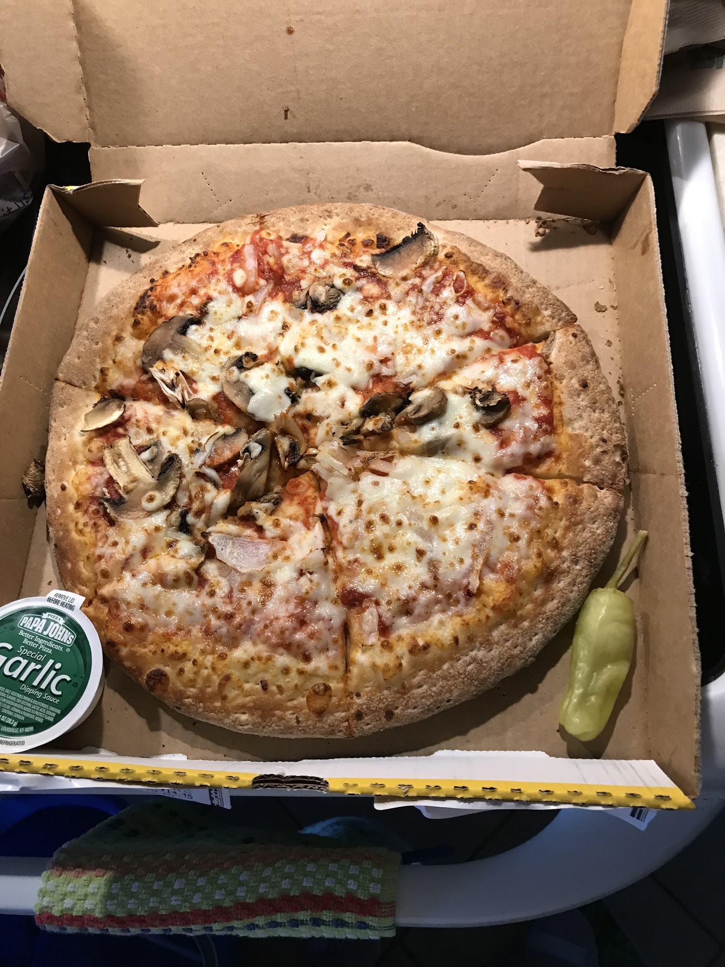 By the time I got to the door, the pizzas were in the hand of my male neighbor (clearly not the AMY listed on the order receipt and printed ticket on each of the individual pizza boxes) and the delivery guy was already getting back into his car. I tried to wave him back up the driveway but he was not paying attention to the house he had just delivered to. My neighbor (still holding my pizzas) said "I told him [the driver] we would get you to come out" and the drivers response was "don't worry it's already paid for". Glad to know papa johns is so unconcerned about the accuracy of their deliveries. Also, based on my experience, if anyone needs to use a stolen card, they will more than likely get as much pizza as they want from this location without anyone ever knowing.