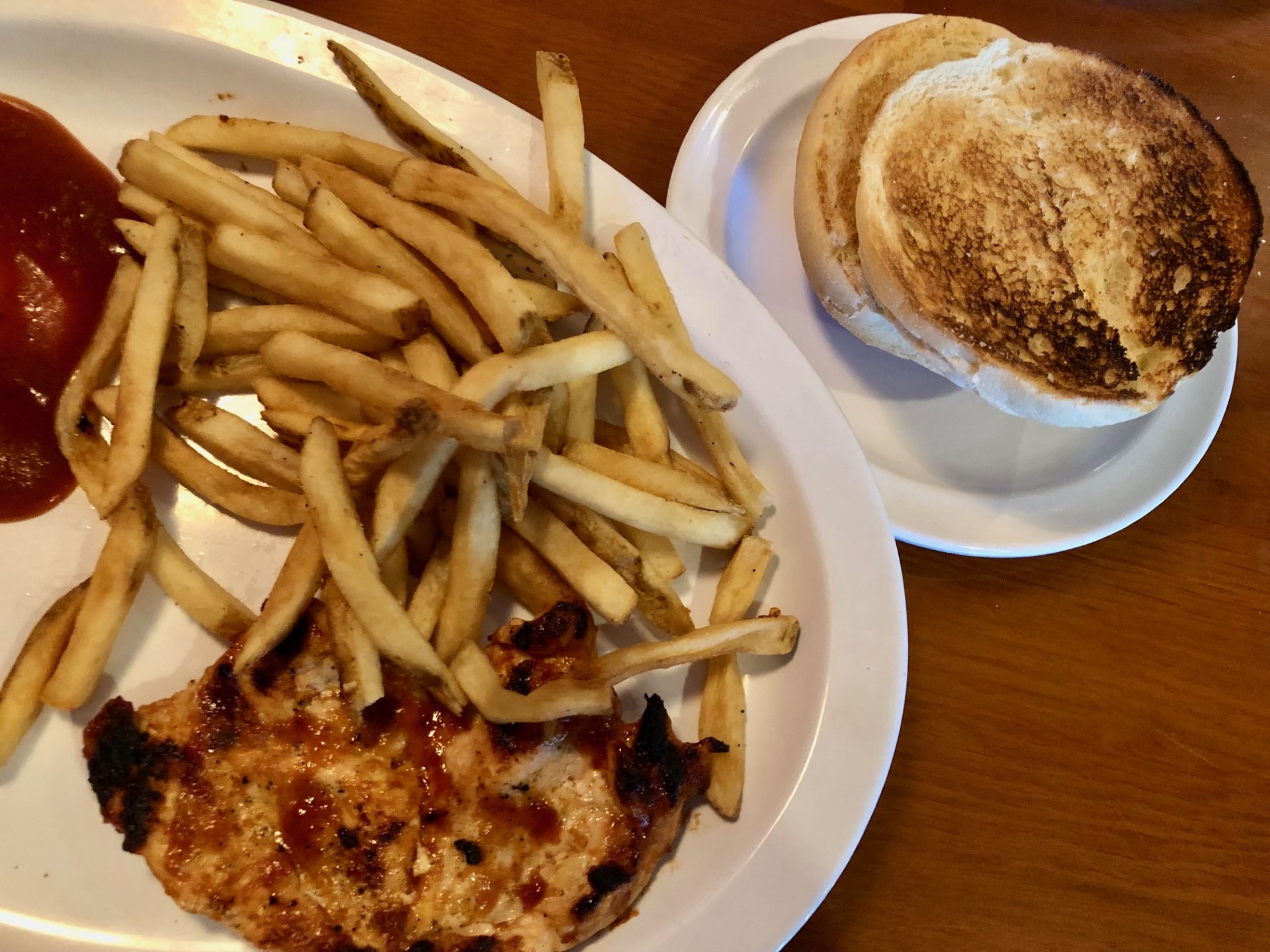 To make matters worse, my dinner arrived with a burnt bun and no cornbread. I politely asked the food runner to get my cornbread. He was happy to do so. Clearly the manager never conveyed to the server nor the kitchen that he had grudgingly approved my cornbread request.