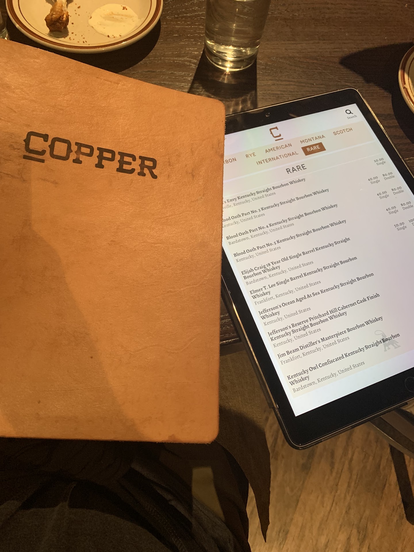 Read moreYour best bet is only going here for drinks, even then the markup is ridiculous for anything and everything. For an example a single Suntory Toki Japanese whiskey is $12, this whiskey is not hard to find in America anymore, a retail bottle is $30-$40. Their food prices are even worse for the quality, everything is so laden with grease it made me sick. They seem to not drain anything that’s touched a fryer as the cheese curds and fries were practically dripping grease. Continuing with the trend of overpriced menu items, the brisket sandwich had the taste and texture of cheap meat, almost like a chuck roast and was almost flavorless and served on a bun that was nearly as greasy as the fries. Our main server was fine, there were several additional servers who brought food and drinks to the table for the appetizers, entrees and throughout the meal and they misplaced almost everything, took quite a while to get the check. Atmosphere was fine, it used to feel more like a speakeasy, now it’s just a reflection of what Bozeman is, a shiny veneer with no substance to justify being overpriced. I used to recommend Copper years ago but can no longer recommend it to anyone unless they want to waste money and risk food poisoning. They can’t even post a current menu online or renew their website, and it might be on purpose so people don’t see the inflated prices. You’re better off eating and drinking at a much better restaurant that will cost you half the...