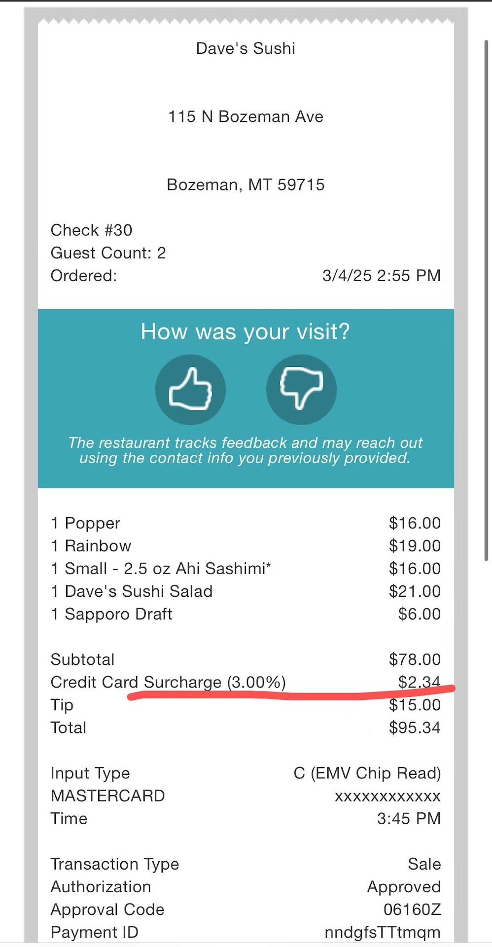 Read moreI don't usually provide low ratings, esp. for long-time favorite restaurants that our family loves...however, my experience last night was astonishing and really not OK. Gone was the safe pickup option for to-go orders by the side door. Instead, to pick up my order, I had to navigate by a large group of unmasked people (people old enough to know better) waiting to be seated via the front door. The waiting area was standing room only and the restaurant seating areas were also packed. With Gov. Gianforte lifting the reduced restaurant seating requirements and people not fulfilling his "personal responsibility" mask wearing request, we will not be back until Dave's Sushi can provide more safe options for their customers or at least a safe pick up option for those who wish not to be exposed needlessly to unsafe conditions. I overheard many other waiting people commenting on the no maskers and how many people were all standing so close together. The hostess seemed stressed as well. Providing a safe work environment for your staff is also important stewardship. On the topic of stewardship, could you also consider using to-go order containers that are possible to recycle in Bozeman with either #1 or 2 labels? I'm staring at 18" x 4" round plastic platter that I have to toss in the landfill instead of the Bozeman green recycling container. I'd be happy to pay a little extra for more sustainable packaging. We have seen this same issue with several to-go orders in the past as well. I hope Dave's Sushi will put more responsible operating decisions back into place for everyone's safety. I understand how hard a time it is for small businesses. However, there's no way we can come back until safer precautions are back in place. The one star is for the...