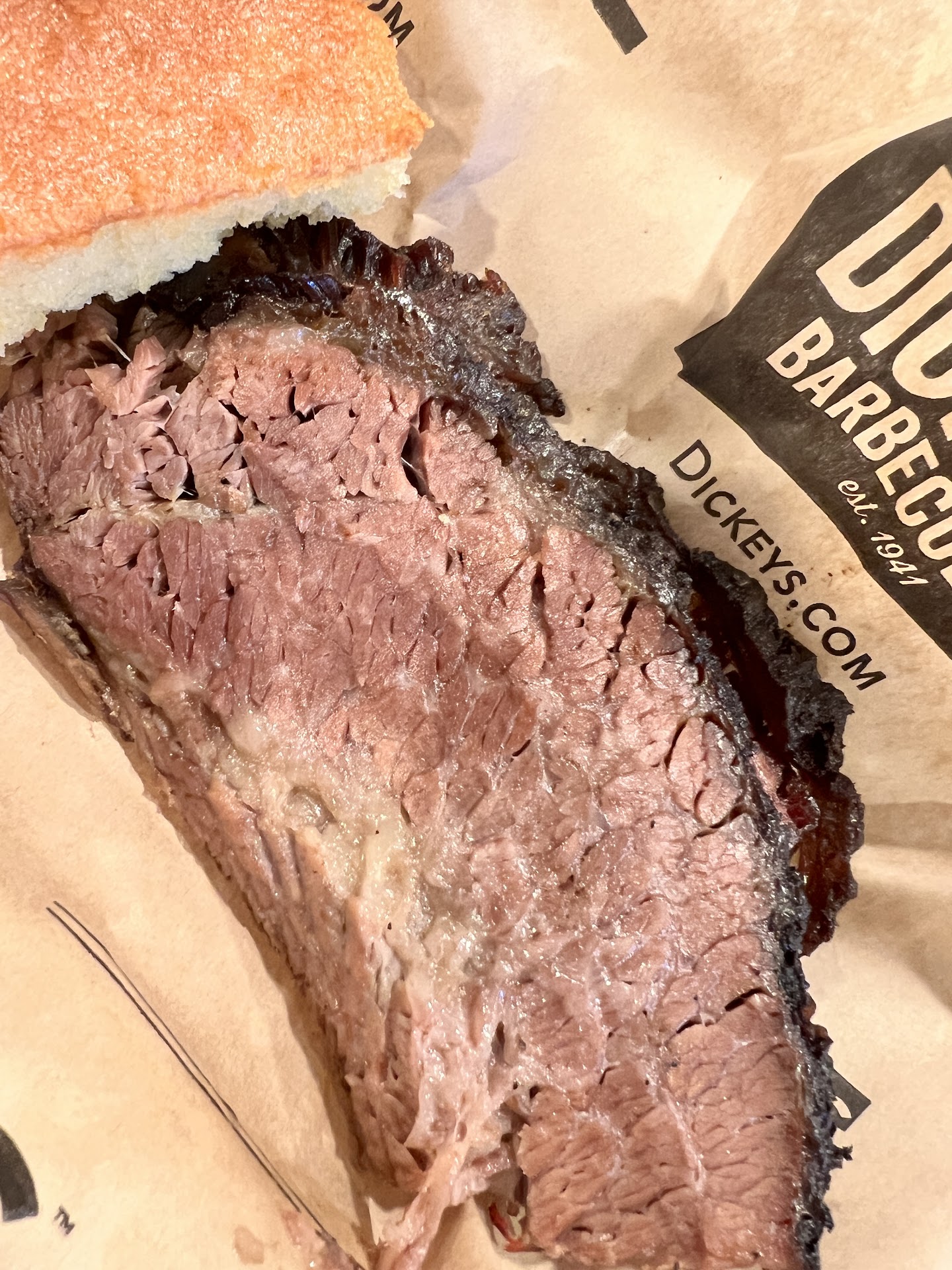 ⢠Burnt ends: Dickey's does burnt ends different than most bbq spots. It's literally burnt, dry, overly chewy ends of the already-cooked brisket. Most places sauce them up into an almost addictive candy-like meat, not here.