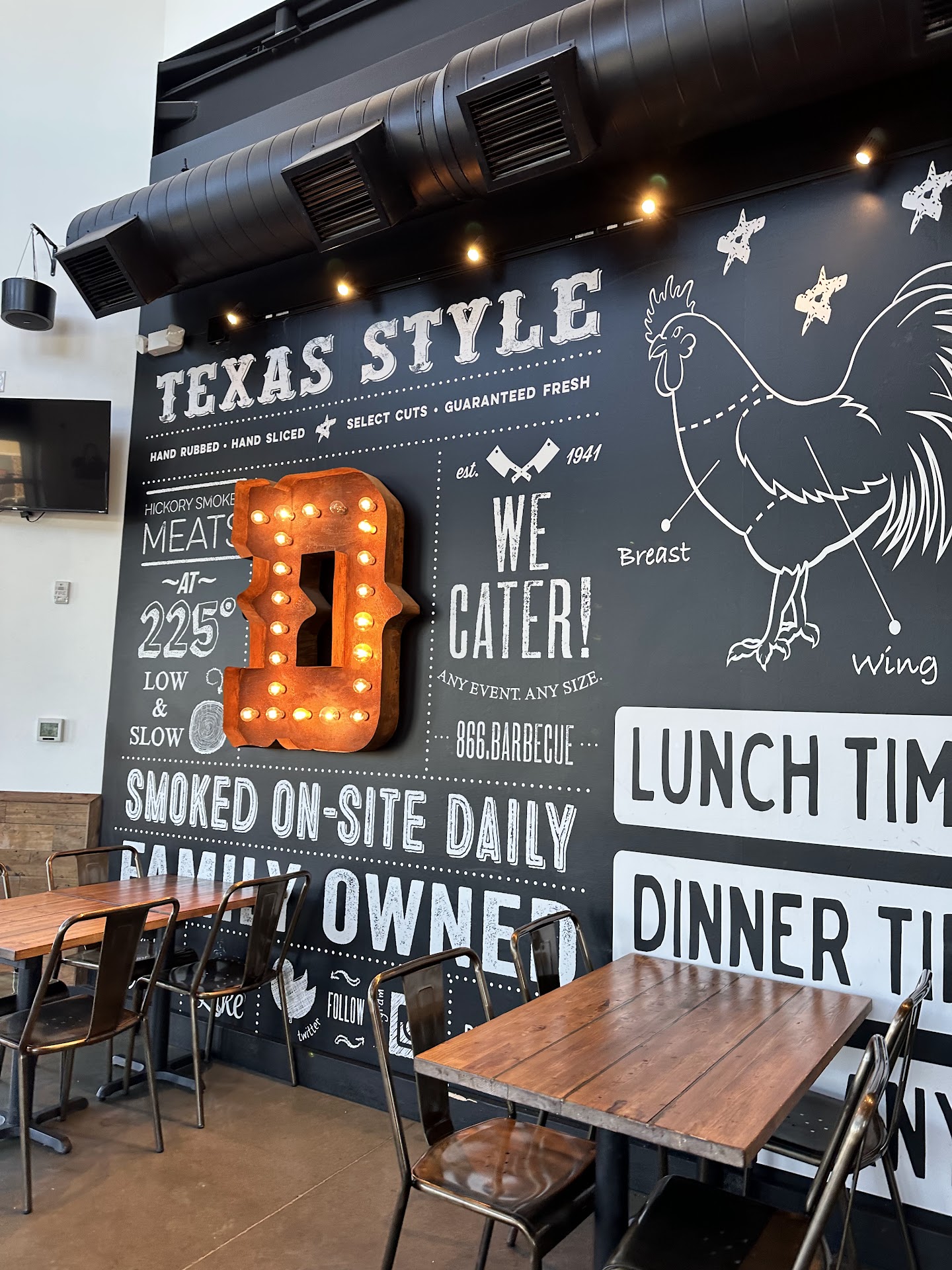 Dickey's was cheaper, had good quality meat (we tried turkey, chicken, beef brisket, pulled pork) without too much gristle, had better sides, and had more appropriate portion sizes (enough to be filling without encouraging over-eating).