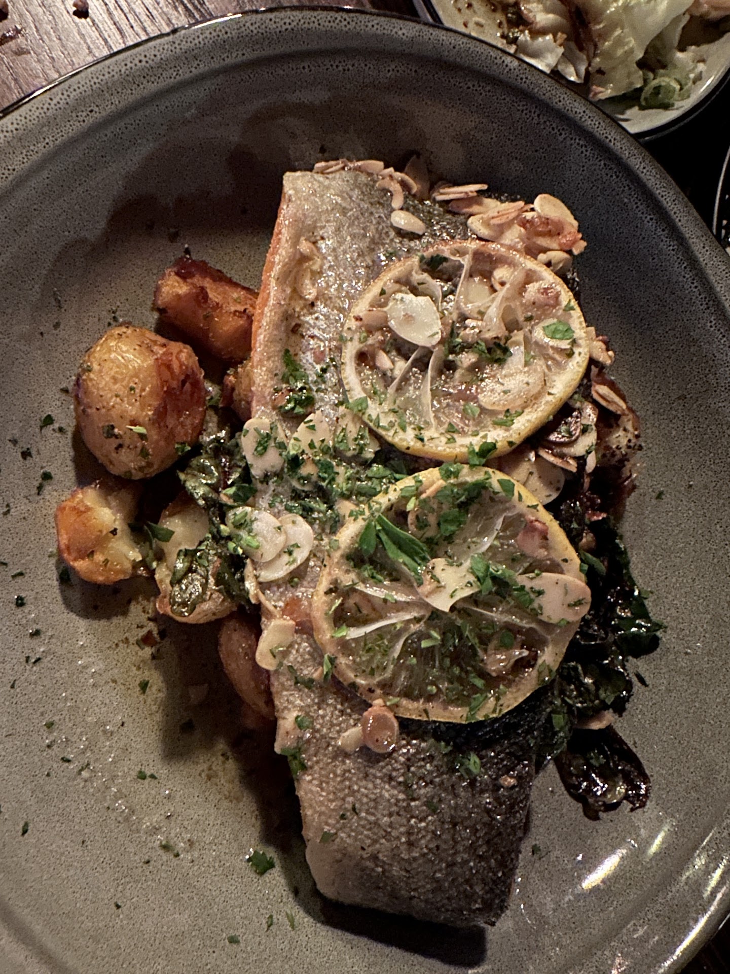 Entrees came; gnocchi was pretty good; a puttanesca sauce with lamb neck. Shrimp and grits weren’t bad but putting at least one more shrimp in it (to bring the total to 3 smalls) wouldn’t kill anyone and would give a much better perception of value. Grits were a bit clumpy but not surprising for being so far outside the South. The star of the whole show, the short rib, was incredible. Perfectly cooked and great flavor. Wish there was a little bit more of the ‘gravy’ served with it as it was also really good but just not enough to have with all the bites of the beef. The carrots were heavily, heavily charred on the outside so I assumed they would be bad, but were actually really, really good.