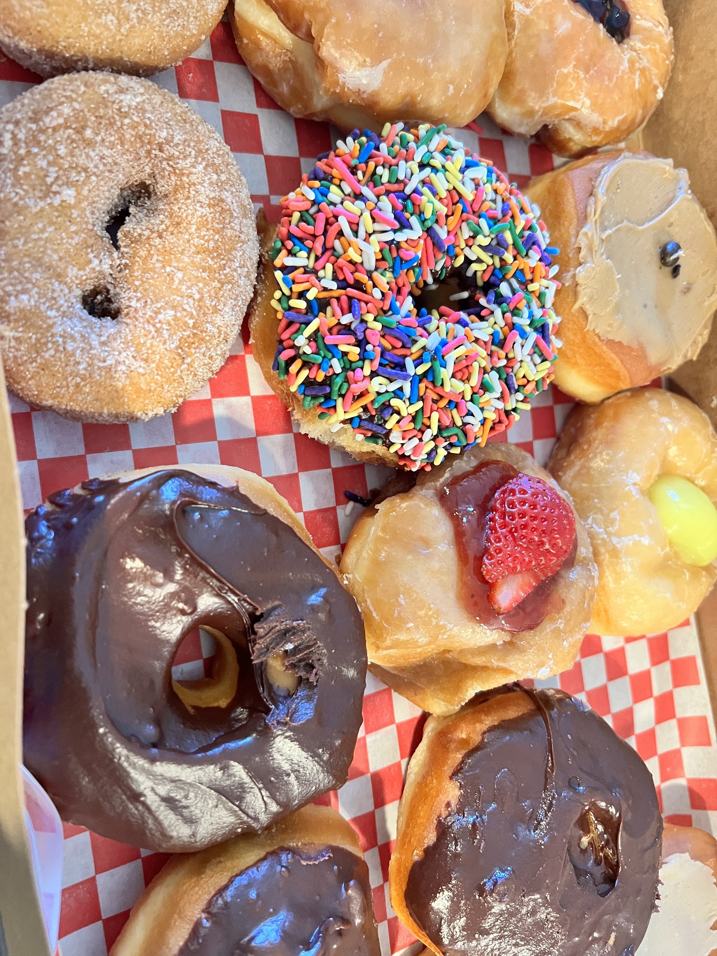 The donuts were good and you can't beat the price. The Bismarck donuts were my favorite. A family behind me had a child and the team let her make her own special sprinkled donut - that was super cute and a fun experience for kids! I can't say these are the best donuts I've ever had but they're definitely at the top of the list in the area.