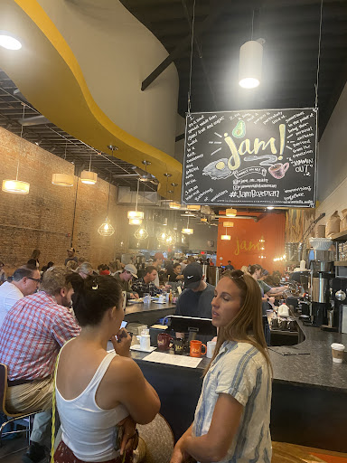 Jam was recommended to my dad and I to stop at for breakfast before heading to the airport, and I hope you take the same recommendation! The place is just a short walk from a public parking lot so it was easily accessible for us and only had about a 15-ish minute wait overall if even that. The place was busy and I clearly understand why now! It was a fun and energetic atmosphere with great music to wake you up and get you ready for your day! While the coffee and the food were literally review worthy, meaning I created this account just to leave this comment (THAT'S how good this place is y'all) they are so much more than just a great breakfast place! I ordered a cafe au lait from their espresso bar, which as a barista myself, was outstanding coffee and great milk foam, I almost ordered a second for the road! For actual food, I ordered the Crab Cake Benedict and my dad ordered the Red Chili and Corned Beef Hash, and oh my god. No words honestly. I wished I had three stomachs so I could eat more! We were only in town from Kentucky for a short weekend trip, and since my dad also ordered a side of toast to try with their housemate Montana Huckleberry jam, we jumped at the opportunity to buy their jams because we were blown away by how delicious everything was!! By the 4 oz, 8 oz and I want to a say 12 oz jars?