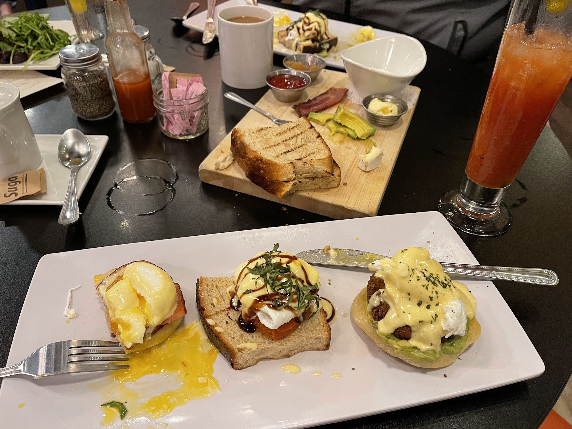 We ordered mimosas- I wasn’t a fan as I prefer sweeter but my partner liked it a lot. Their coffee was really tasty and came hot enough for my liking (usually places serve colder coffee for some reason?).