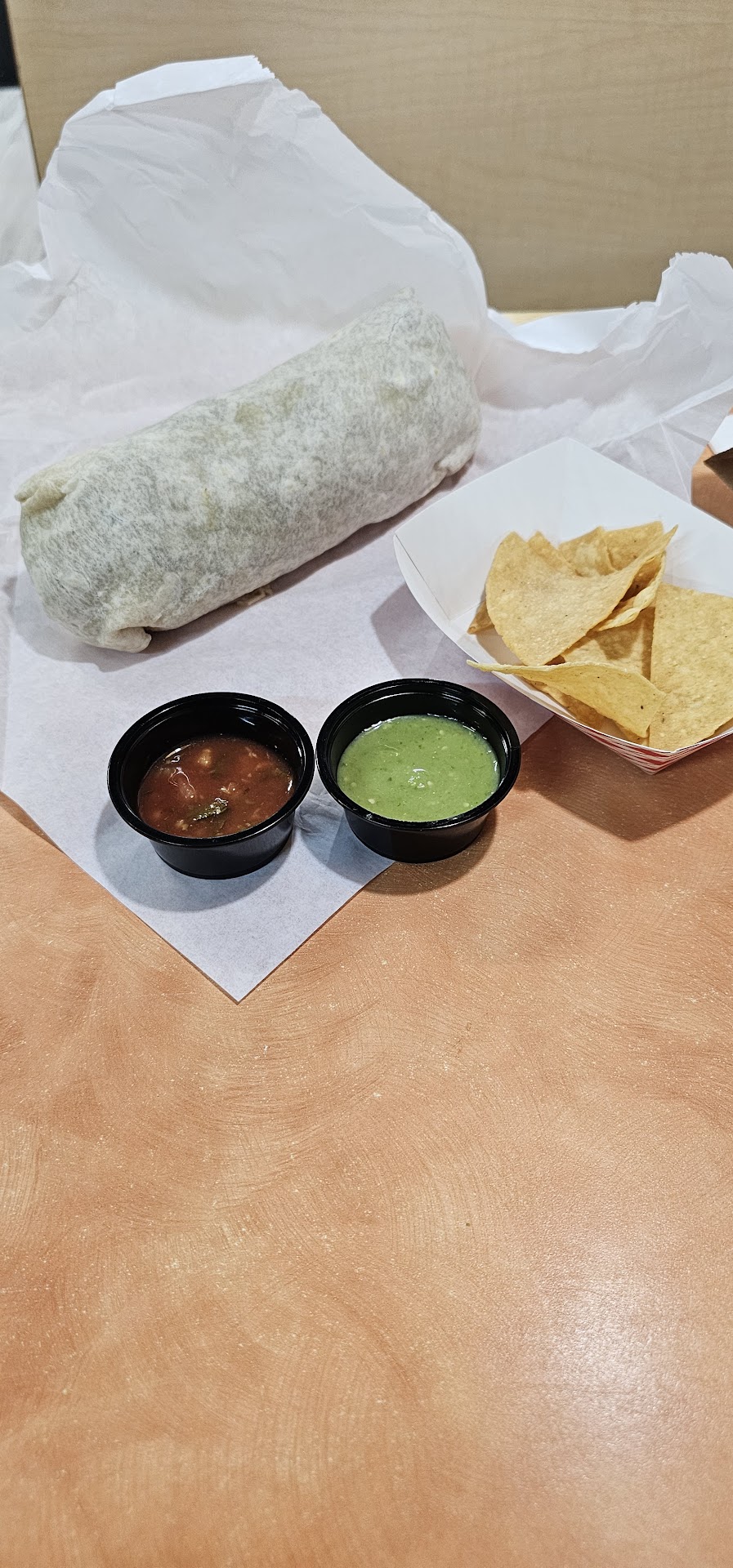 Ā Ā Ā Read more1st time here. Very clean and well lit place. And Wow! Very good food, fresh and tasty! My Super Burrito was massive, stuffed well with meat, and the sour cream and avocados were plentiful. Their Salsa and Chip bar is perfect! You choose how much you want, when you want. I barely had time to enjoy some chips before my food was brought out. Definitely...