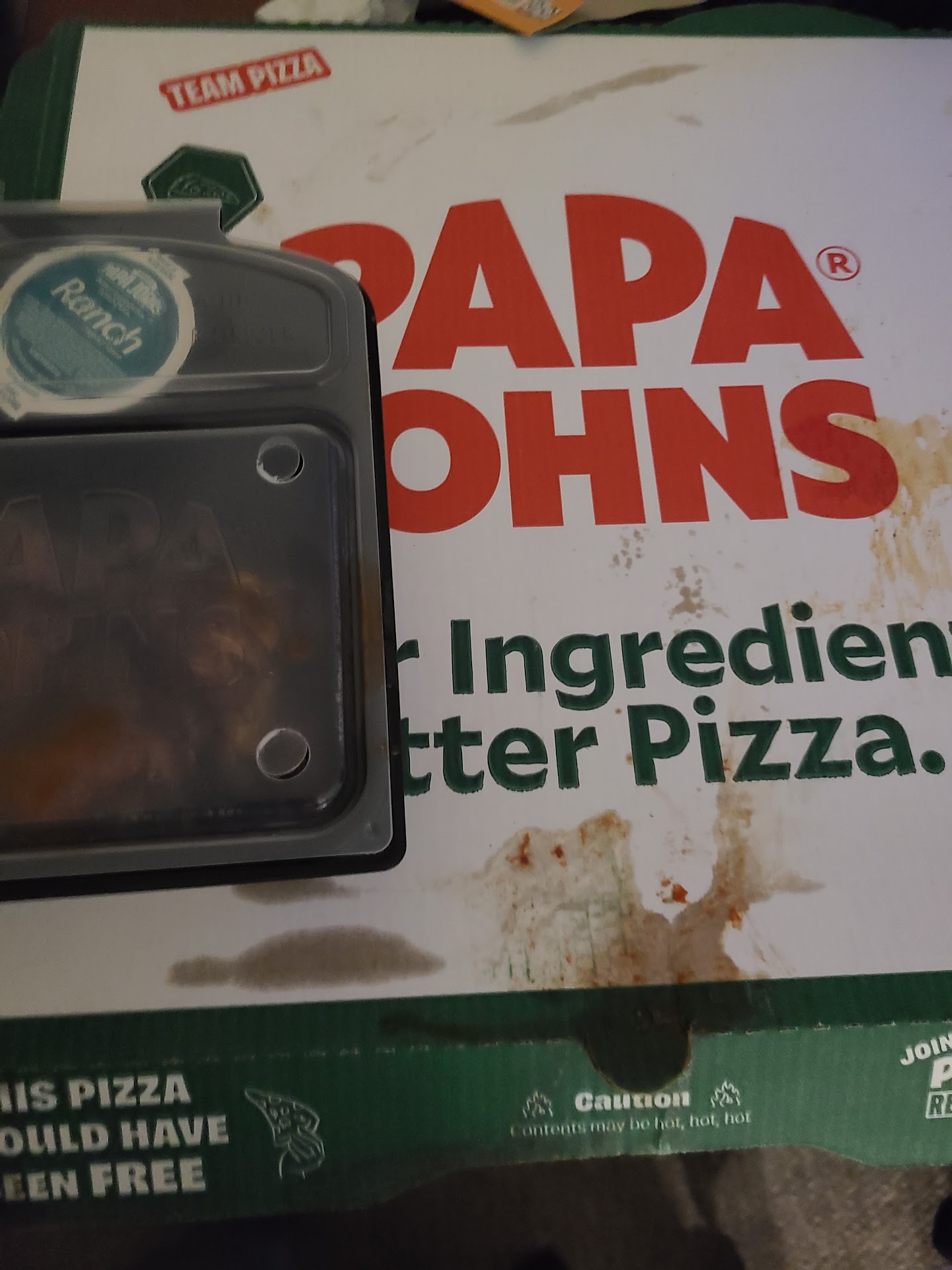Read moreWe normally order from papa John's as we usually have no complaints of the pizza just the delivery time! Usually after 15 min past delivery time I call. So I did 20 min after I should of received my pizza. Only to be rudely spoken to and then my pizza was burnt and cold... our garlic knots were burnt and cold... and the pizza box tops were covered in greace. Our garlic sauce is still cold and had to heat up to use it. Our last pizza was thankfully not burnt but was cold!!!! We live 6 min away from the store.... no need to for this at all! And then to have horrible customer service. So no tip was given to the driver. As it was "on its way" on the tracker for 20 min!!! This makes since to why we have cold food!!! Thanks papa johns!!! We will not order again. Not worth the $$$$ to have burnt...