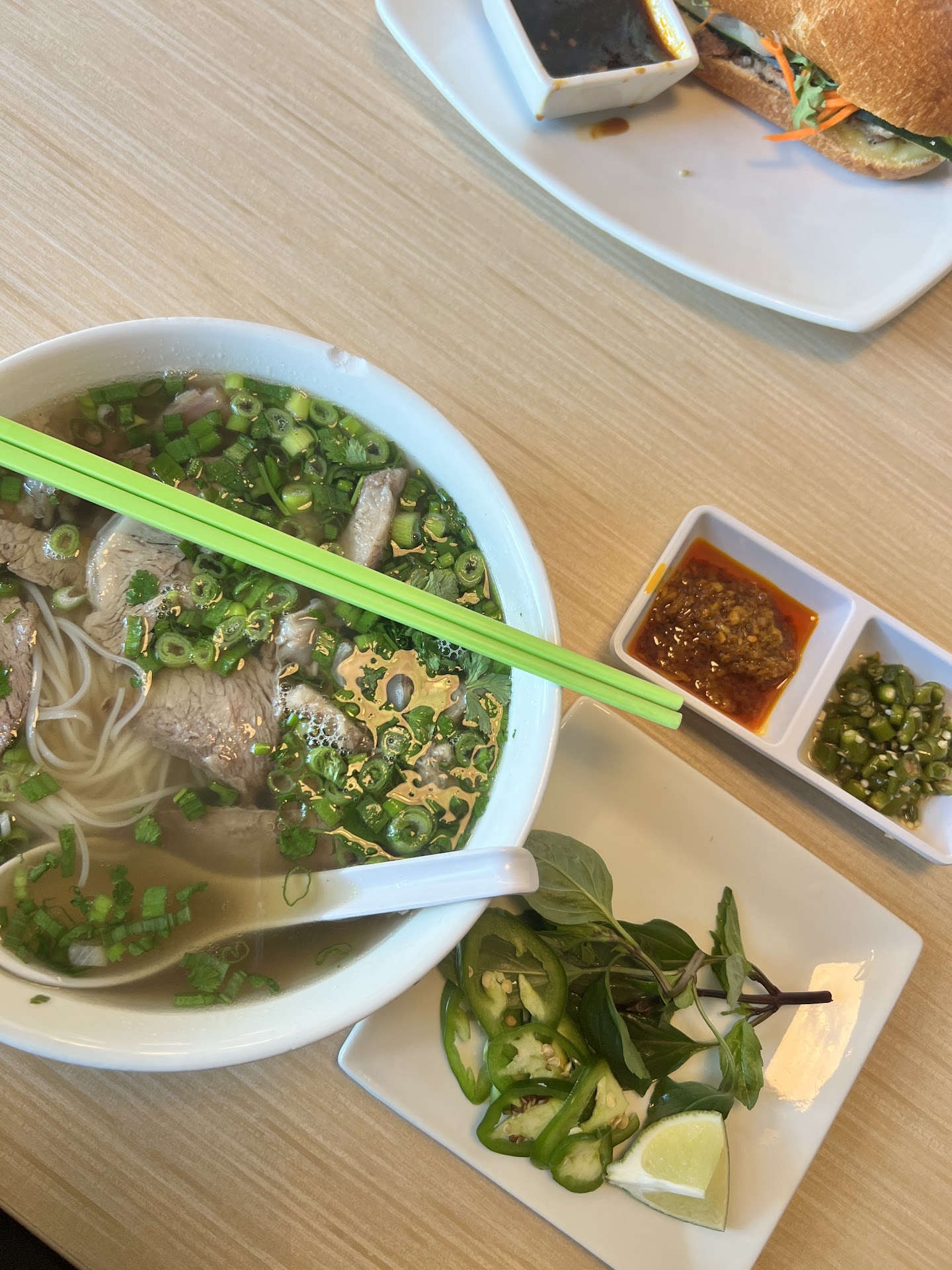 Read moreBeen sitting at our booth for 41 minutes and finally got our appetizer, which was advertised as 4 spring rolls. It came out as 2 spring rolls cut in half. Seriously. And no sign of our entrees in sight. (*Added info - it wasn't very busy in the restaurant, if every table had been filled it may have been a little easier to understand. What I did see was, order after order being taken to the front for delivery service. Which means the kitchen really needs to work on time management for their in-person guests and to-go orders. Multitasking is essential in keeping everyone happy. And when I got my vermicelli entree - the egg rolls were cold, the chicken was cold, I understand it's a cold noodle dish, but the chicken was cooked in advance and just put on the dish. No flash griddle searing before adding to the bowl. And cold egg rolls, that means my food has been sitting for at least 10 minutes in the kitchen before being brought to the table. My hubs had pho, another dish that has many ready prepped items that are assembled in the bowl. The broth is in a large pot. The noodles are cooked. The meat is placed in the bowl with the scorching hot broth and noodles and a few herbs are tossed in. 45 minutes to have those 2 items brought to the table. Very disappointed in the whole meal. Guests should be alerted about the kitchen being overwhelmed at the start to give them the opportunity to choose to wait or patronize a different establishment. Had I known I was going to get hangry waiting for a simple meal, I would have decided to go across the hall to the other restaurant) I was so excited and hopeful when I heard a Vietnamese restaurant was coming to Bozeman. We waited a...
