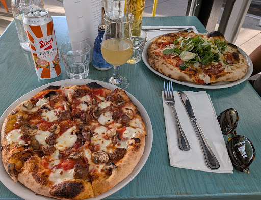 Ā Ā Ā Read moreAfter driving for 4 hours we came into town late. We quickly checked into hotel and then the kids looked at me with that look. You know...the one from some zombie horror movies but in this case all they said was "food....". We quickly scanned for places but after long drive I really didnt want chain or junk. We packed up and headed downtown but most places close at 9:30. I was driving by this place and simply liked the outdoor look of it and that it wasn't too busy. Full high speed, kids faces presses on windows of Suburban, I made the u-turn back to it. Walked up and even before I was close to the check-in, was immediately greeted by owner with big smile. He was too nice. Overwhelming welcoming and just made me feel great right away. After he heard about our long drive he quickly asked about drinks and brought something out for kids and nice glass of wine for me. The pizza menu blew me away. Maybe I was "hangry" as my kids point out but I really wanted to try a slice of everything. I went with Carne E Verde. Ok I'll admit that I was starving but it was really really good. It's not too expensive but not cheap either. Pizza's are "complex" by some standards but fresh and wonderful.
