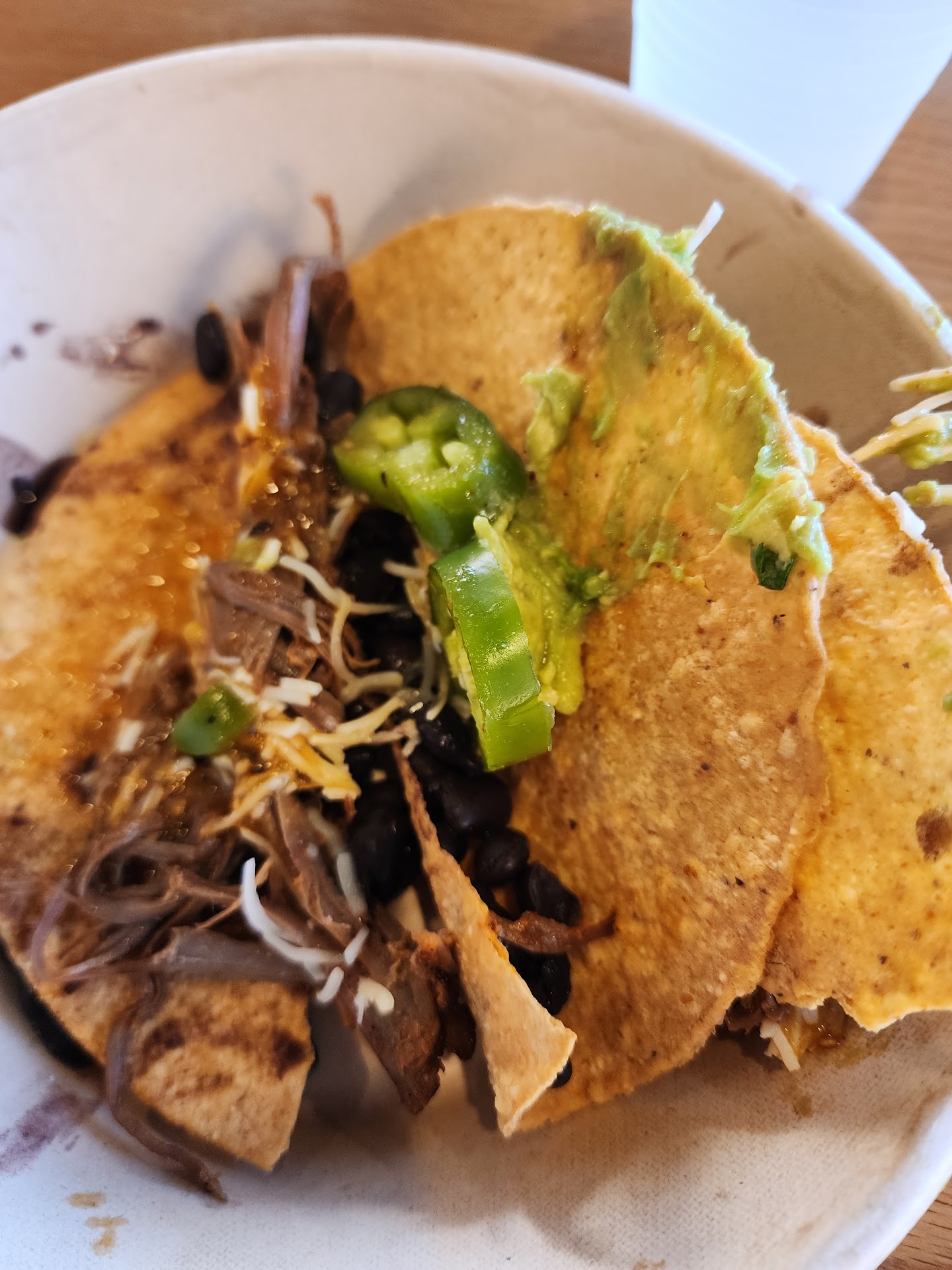 Read moreI was really craving chipotle, but after seeing the particularly horrendous reviews for the Bozeman Chipotle and how filthy the restaurant is and awful the portions are, I decided to head over to Qdoba, which admittedly, I had low expectations for. There was a long line, but the employees were fast, attentive, and focused. The portions were extremely generous. These guys were making bowls and burritos as if they themselves were going to be eating them (in the best way!). I usually order double meat at Chipotle because their spoons are so tiny and the portions leave much to be desired unless you ask for extra. I didn't see anyone in the long line at Qdoba have to ask for extra anything, because they portioned appropriately every time. I did get double meat anyways and it probably accounted for half my bowl (hell yeah!) I was also pleasantly surprised that their pickled jalapenos are made in house when I totally expected them to be from a can. Overall, the service was great, the employees were working hard (and hopefully are paid accordingly to avoid the Chipotle disasterbever occuring) , and the food was fresh and delicious as well as portioned super well (I got a bowl). I paid much less here for nearly twice the food I would've gotten at you know where. Highly recommend the new...