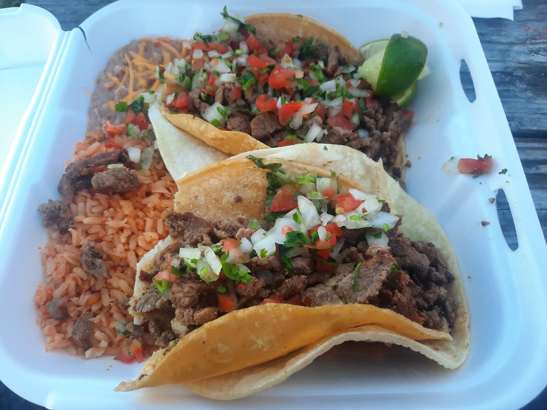 I’ve had a lot of tacos in my life — I usually try to get a few at every Mexican place so I can compare places apples to apples. This place’s are easily among the best. They are significantly larger than I expected them to be, with two tortillas each and a ton of fresh onions, tomatoes, and some cilantro. I got the asada and tripe. Asada is pretty much always good, and this was no exception. I wasn’t expecting to like the tripe taco, but I was blown away by this. It’s cut thin and deep fried — it’s a little like slightly crisp bacon, but somehow better. And like the other tacos, they did not hold back with the portions.