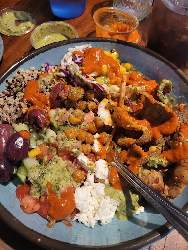 Read moreWent to see what all the hype was about and it definitely lives up to it! Spitz rules! From the get go the service was top notch. There was a line when I got there but they cruised through it fast! One employee taking orders at the register while another took orders on a handheld device. The kitchen cruised through the orders while still paying attention to detail and making every order with love. I mean, just look at my bowl and tell me it wasnât made with love and it only took maybe 5-10 minutes! If you wanna know, I got the Medi bowl and the nice employee let me in on a little secret and hooked it up with a side of harissa to add to my chicken. BOMB.COM. The employees were so friendly and were constantly ensuring the lobby was clean and that customers were enjoying their meals. The vibe of this place is so cool! Vintage mixed with street art mixed with local favorites. Theyâve got vinyl records lined up along the backside of the bar and in the bathrooms, murals of the mountain range, bobcats, and wolves! This is exactly what Bozeman needed and I will without a doubt be back to try out the rest of the menu. Thanks for bringing some character and charm to...
