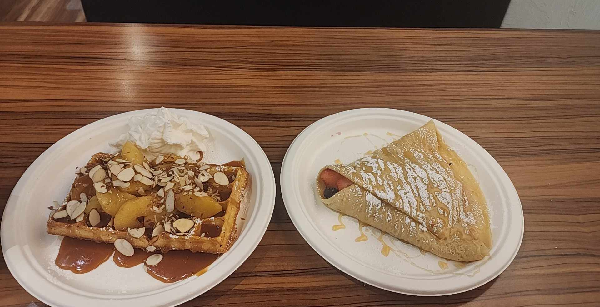 Read moreWow!! Have you ever been to someplace, and the experience was so good that you start plotting when your next experience will be? Well, that was stuffed crepes and waffles yesterday. My friend, who was visiting from it of town and myself, were meeting for breakfast on April 03rd. Stuffed crepes and waffles was our place of choice. Thankfully for us, at eight in the morning, there was a spot for us right in front of the business. As soon as we entered, we could tell the atmosphere was very warm and inviting. Everything was so clean, and during our time there, we saw continually that the staff were wiping down high traffic areas. The menu was very self-explanatory and extensive. We chose one sweet and one savory crepe to share, and boy, were we in for a treat. The crepes themselves are mauve and could have easily fed 4 people, but since we are Americans, we downed it all!! They were absolutely delicious and totally hit the spot. The staff were incredibly kind and engaging. Nick, our server and cashier, made every effort to ensure our experience was incredible. He was involved but not invasive with a ready smile and polite face. Taking a picture of our God was the last thing in my mind as we dig in immediately with "oohs and ah" and way too much enthusiasm. I can't...