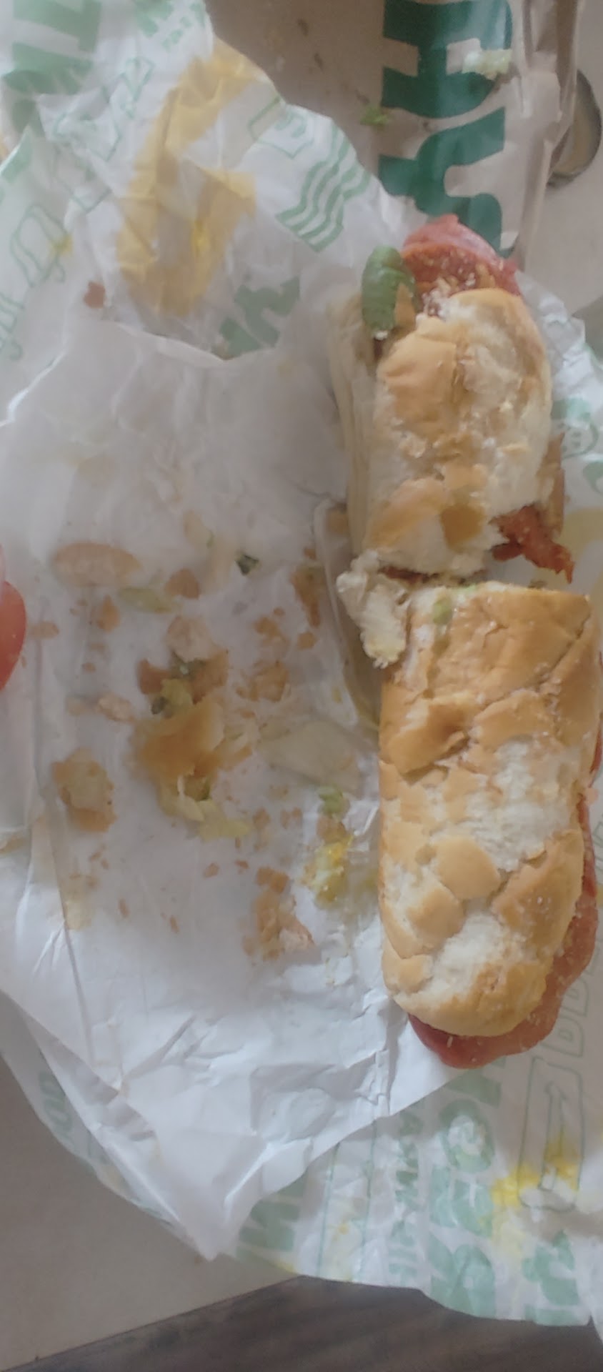 Read moreI brought a footlong spicy Italian with triple meat. I was asked if I wanted my bread toasted I said no so he did not toast it. Yet when I sat down at the table the bread was hard and the top was falling apart. I did not raise a fuss about it but if I paid almost $20 for a sub I would at least expect for it to be fresh and not made on old bread. Other than that everything else was okay. I don't know if I'll ever eat there again. In the photo you can see where the tops of the bread have fallen apart and the pieces are on the...