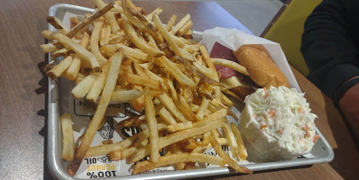 Now the FOOD!!! We all had something different to get our taste buds in a frenzy. I had the explode in your mouth fried avocado with stuffed gouda on a fried chicken filet sandwich and it was an experience. Don't know what I mean, get one and thank me later! The cheesy melty goodness all melts together and creates an umami taste bomb. Rosemary pepper fries (4/5 a little too pepper forward), fried pickles (dip these in the house sauce 5/5) and coleslaw (3/5 too vinegar based for my fancy).