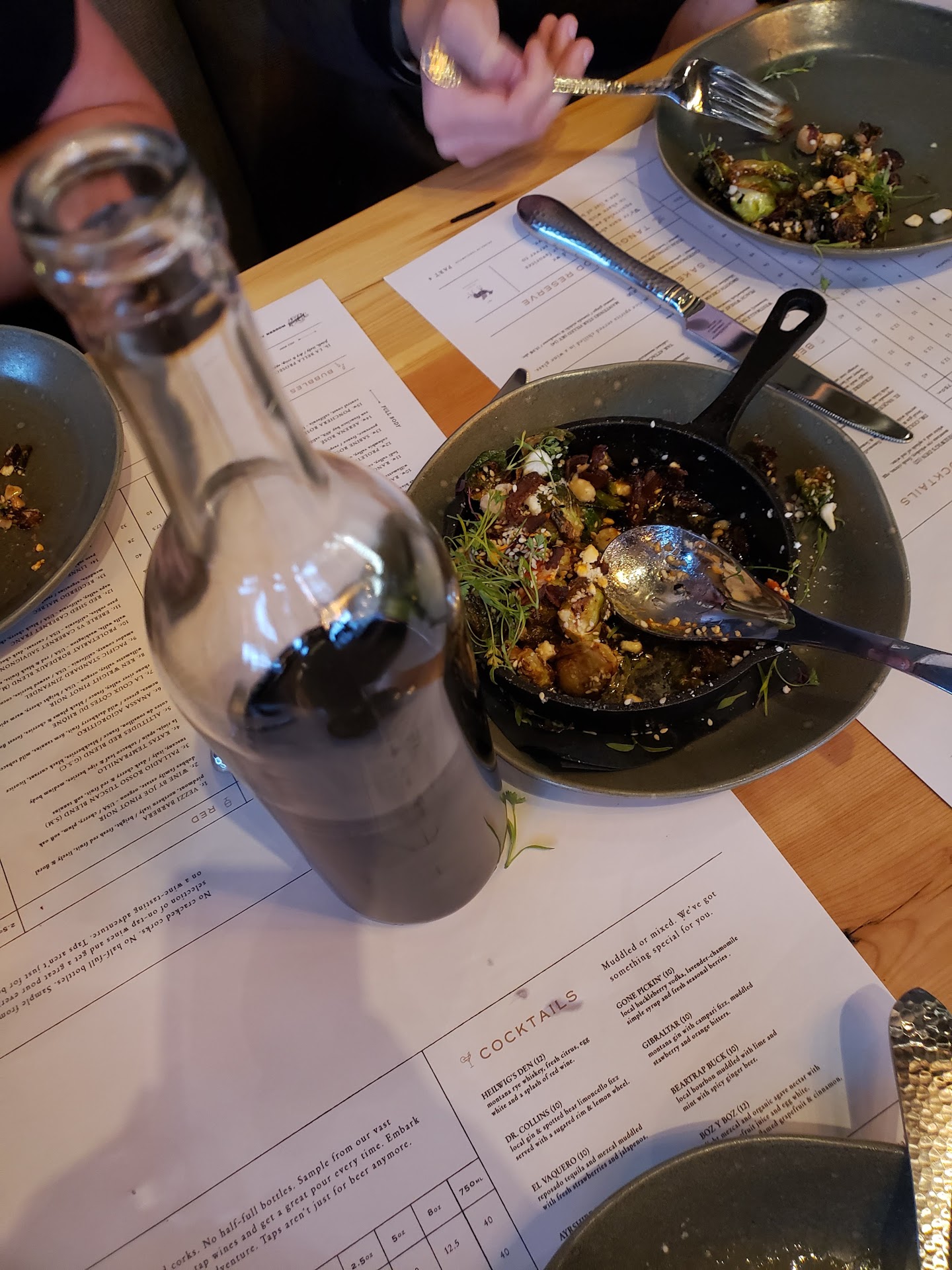 Read moreBrand new restaurant in town in the same building as Nordic. I love the atmosphere of Tanglewood - very relaxed, calm and casual. Tasteful and earthy decor - beautiful light fixtures and I spotted a wooden hutch I would kill to have in my own house. Each table is set meticulously, with paper drink menus, wine glasses, water cups, and silverware wrapped in cloth napkins. Each table gets a complimentary cup of deliciously roasted and seasoned nuts. I ordered the El Vaquero cocktail and my party ordered other cocktails from the menu. The general consensus was that the cocktails were just ok, very bland and not much fluid volume, but I am sure they'll get better with time. I was very impressed with the wine selection. Wine is something Bozeman has been missing but I am happy to see that Tanglewood is changing that! For my entree, I ordered the Tanglewood burger. It came with thin and slightly crisp French fries - just the way I love them! The burger was cooked perfectly (for me, that is medium) and the sauce that came on it was so yummy (I assume it was a home made "fry sauce") They also have a dessert menu, not pictured in my photos. I highly recommend the mini cast iron cookie. It's the perfect size dessert for someone like me who wants dessert but doesn't want to commit to something huge because I'm already full from my entree. I highly recommend giving this...