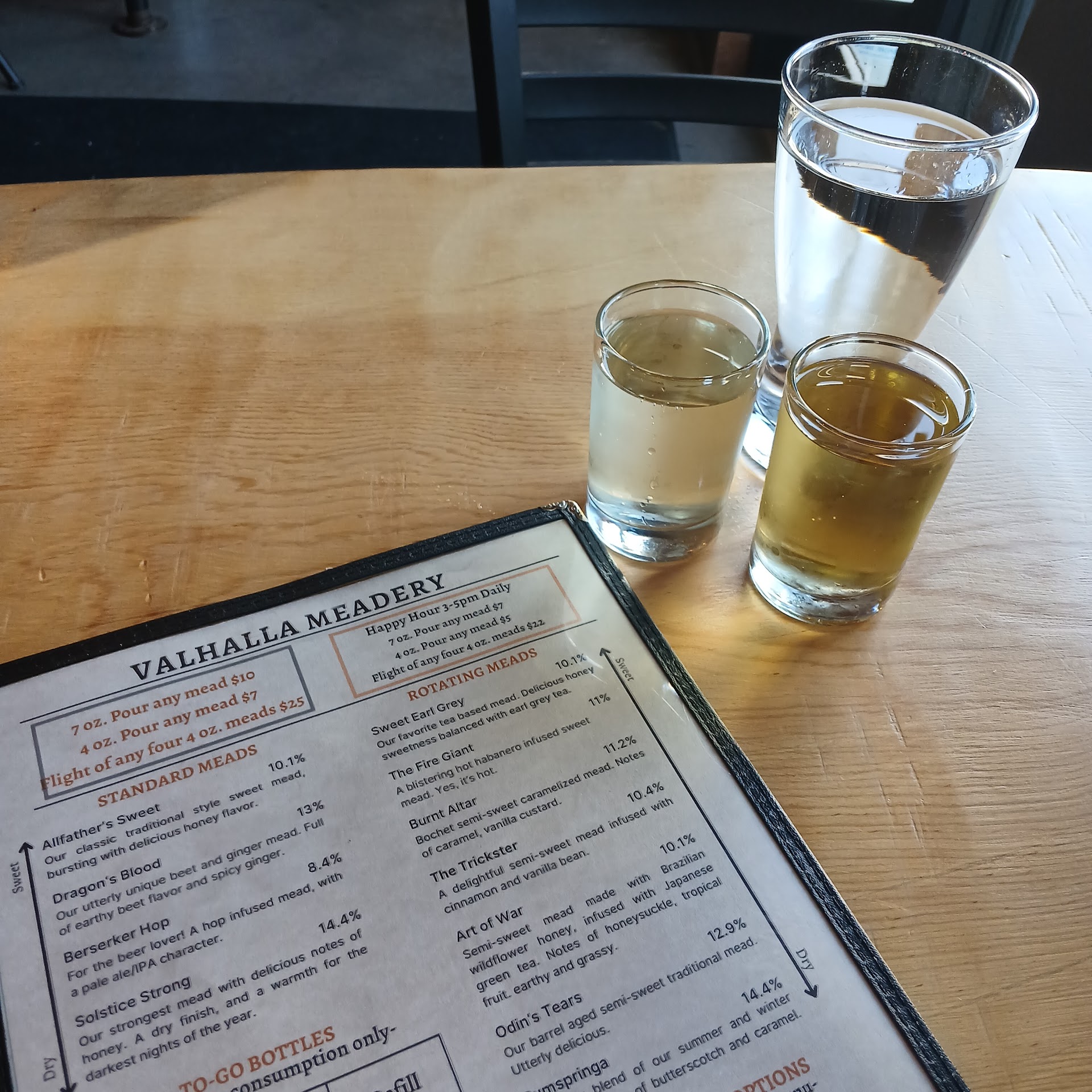 We only tried 10 of the meads, but every one of them had body and character. Favorites were the Solstice and Mulled, but we drank everything in front of us.
