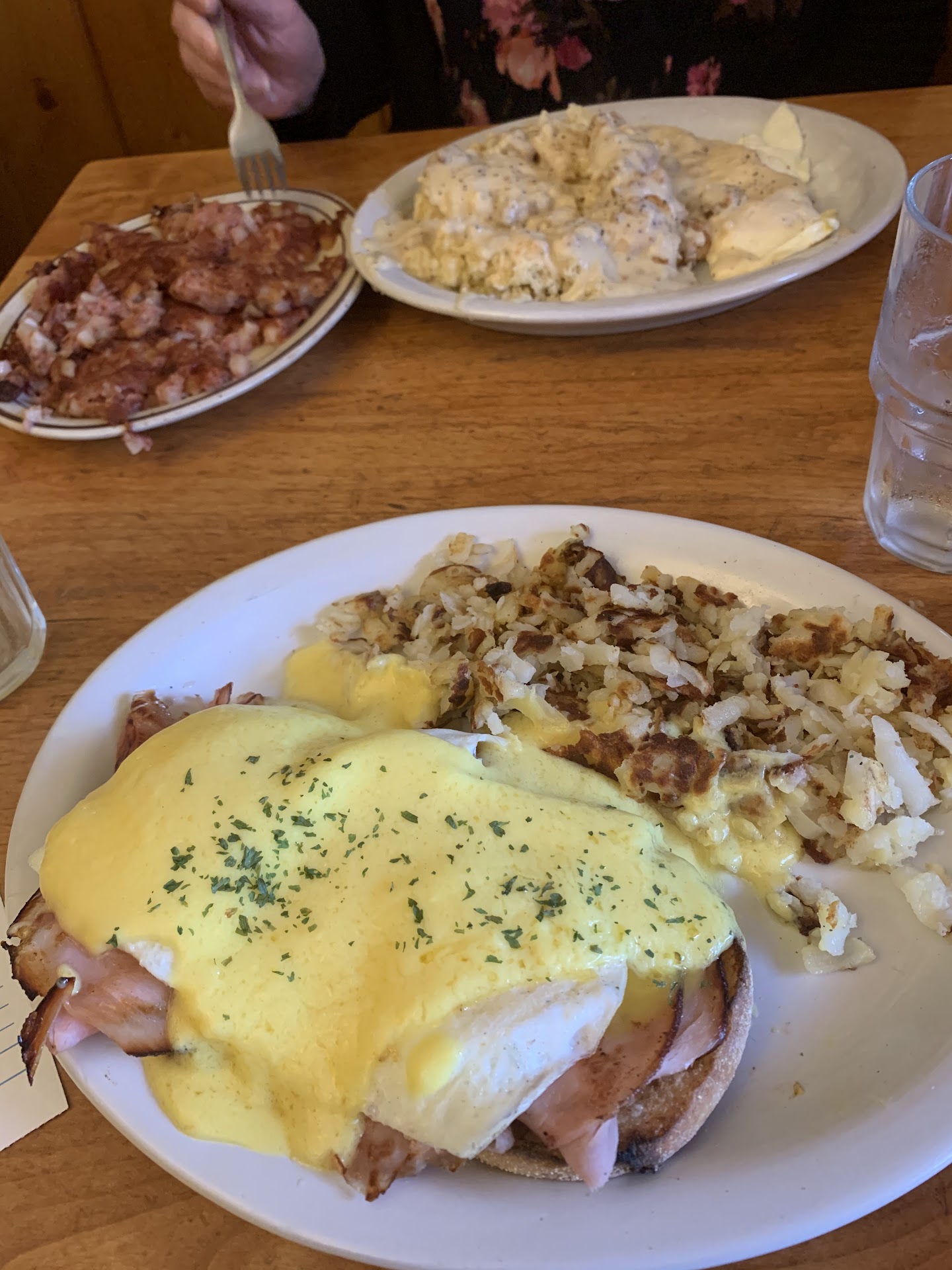 When I was ready to pay, I asked what flavors of pie they had available, pointing to the ones they were putting in the display case (there were several made and ready on the counter that they were in the process of cutting and putting in the display case). She looked at me like I was dumb, and said "none" and walked away with my card/check. Never felt more disregarded and looked down upon than this visit. Mind you, this was early in the morning with only a few other guests in the entire restaurant, and 3-4 waitresses, plus several other staff in the back, not when it's busy and packed (though even then the lack of acknowledgement and kindness still happens). Used to be my go-to breakfast spot here in Bozeman but now I think I'm going to have to start branching out to some of the other places in town. Simple basic humanity and customer service goes a long way, and I was not even remotely unreasonable in any of my questions or behavior or anything else. Even getting breakfast from McDonald's of all places results in far more kindness/etc than here, which should be...