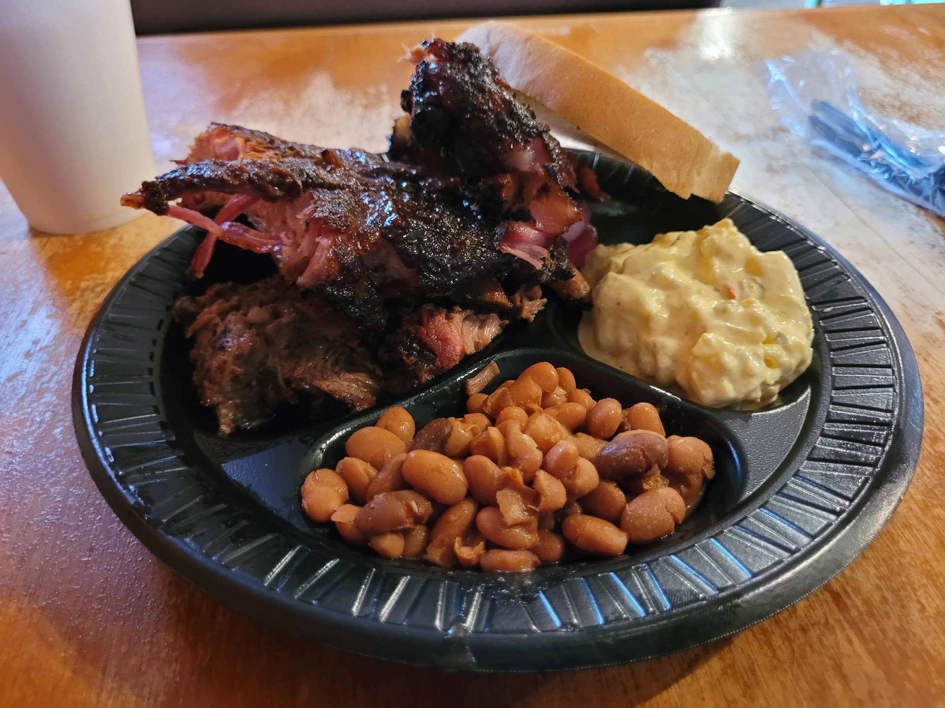 On Memorial Day in Bracketville this was about it for food, so we gave it a shot. I couldn’t find an actual menu anywhere on line, so I called in…. I asked the young lady who answered what kind of sides they had and she responded “what are you looking for?” to which I replied. “Please tell me what you have so I can make that decision.” She proceeded to rattle them off so fast that I couldn’t hear them all. It started with fried tomatoes so she had me. I drove over to read the menu in person and got another person equally as inept. I ordered marbled brisket….got lean. A half rack of ribs….not seasoned, but had some burnt sauce on them and 12 oz. sides of coleslaw and potato salad which may have contained 8oz. each to feed 3. I was given 1 set of utensils to share and the plastic knife had a hard time cutting the ribs which they didn’t cut apart for me. I understand business owners struggling to find good help, so I gave it a high star rating. It deserves no stars and on this day the staff sucked....