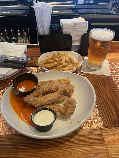 Food: On par with our other experiences. Zingers are our favorite because they have a great fry on the outside and still juicy on the inside. Their selection of sauces is great. I got Garlic Parm with Buffalo sauce on the side. The side of buffalo arrived half empty because it was spilled on the plate. I was fine with this, but others may not have been. My wife was able to easily customize her order of the Zingers Tikka Wrap to just Zingers and buffalo sauce in a wrap and she was happy with it. We both got sides of fries which were crispy outside, fluffy inside, and well seasoned. We also got a pretzel which is another favorite because it comes with beer cheese and tasty honey mustard.