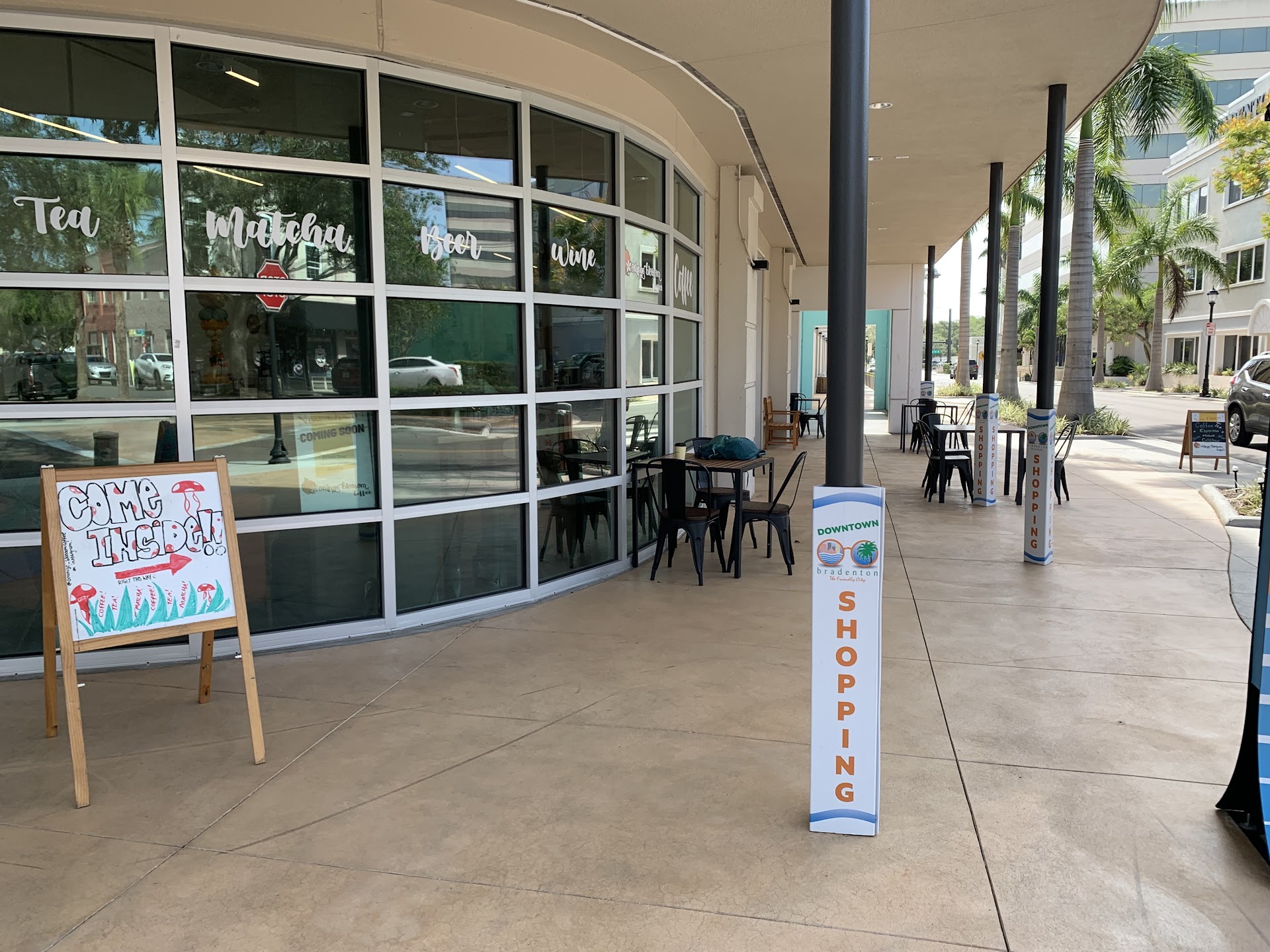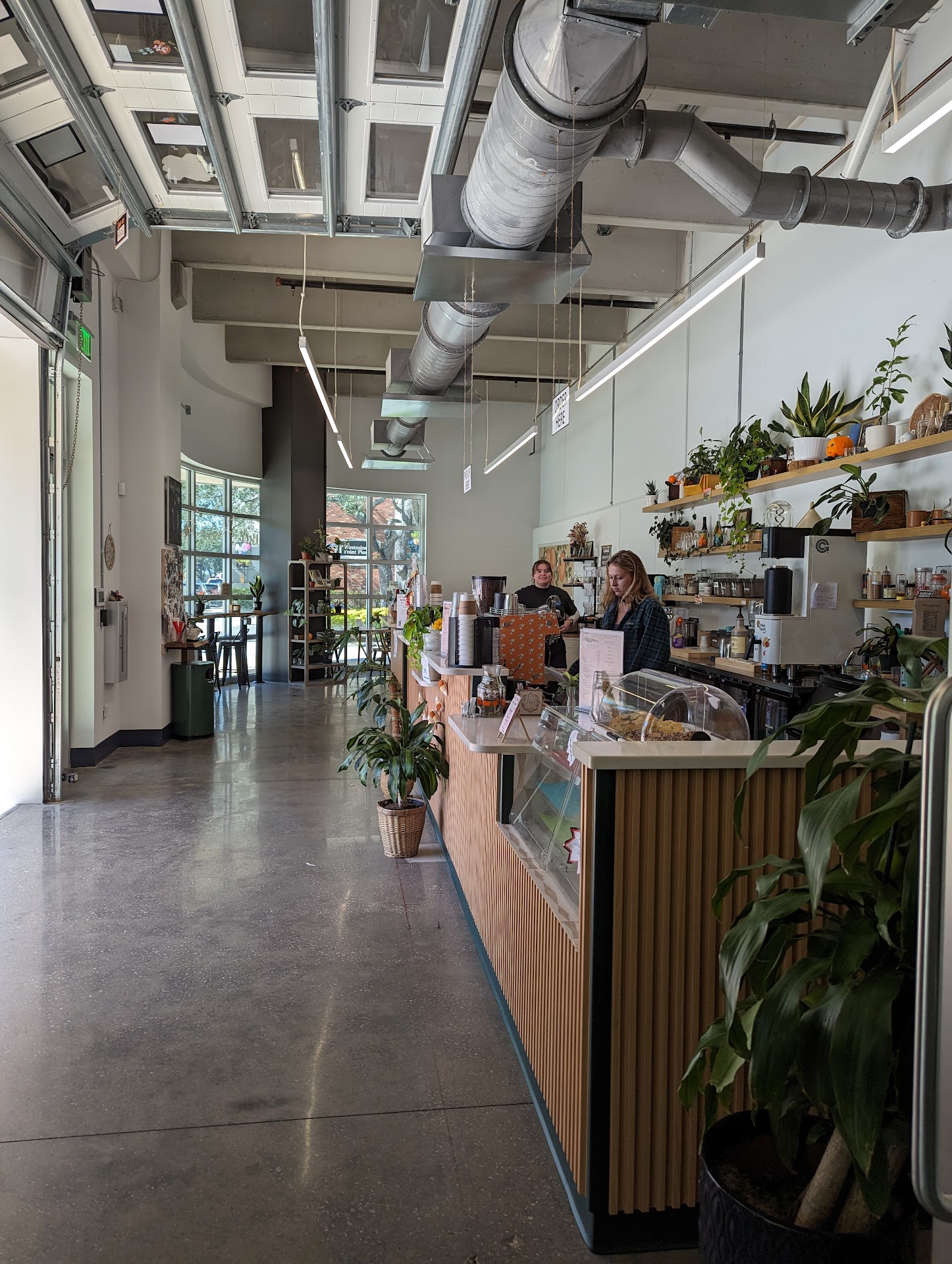 There's seating inside and outside. They also have a community board for people to put up business cards. Parking is right there with the parking garage. It's a nice place to meet with friends or to go by yourself, like to study or read. I'm sure...
