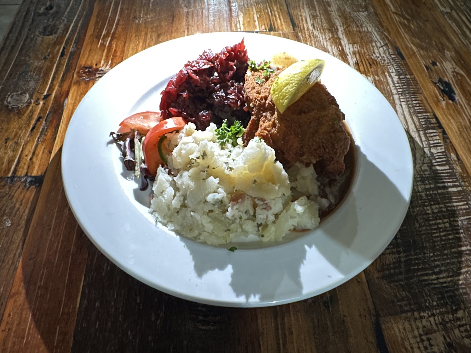 THE FOOD: 5 stars out of 5. Not fancy, just exactly authentic and beyond satisfying for what my expectations were for flavor, presentation, and potions. There are an abundance of schnitzel choices, varying proteins and all the German veggies you hope for… the potato salad and purple cabbage are my fave. For the protein you absolutely cannot go wrong with the Cordon Bleu schnitzel. While I was having their lunch portion and enjoying the explosion of flavors on my experienced palate I closed my eyes and it felt for a moment as-if I was in Germany.