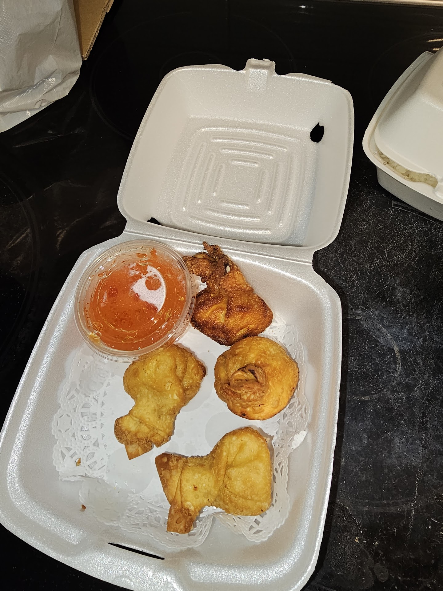 Ā Ā Ā Read moreWe ordered 2 orders of crab Rangoon, and two orders of chicken fried rice. I called them to let them know that thereās a problem with the crab rangoon it was pungent and rotten. The manager then tried to assure me that there was nothing wrong. Which is kind of crazy since we have these very foul yellow Rangoon. They refuse any kind of refund and told me that I likely do this to restaurants all over town. He also continue to insult me and say that I was just lying to him for the money. He said he refused any type of refund and told me to drive the Rangoon back to the restaurant for him to inspect. When I offered for him to come over and pick it up, he told me I was being irrational. He was very combative and simply rude. As a local resident of over 11 years, I can tell you their food has declined drastically. The rice that we ordered as well wasnāt good. We ended up taking a couple bites of that, throwing it away overall horrible experience at this restaurant even more horribly mannered ownership. This would be an excellent restaurant to see on Gordon Ramsayās kitchen nightmares. Horrible food and a manager so incompetent to understand that he is losing locals in the area because heās nasty just like the food. Needless to say youāre looking for food poisoning. This is the place to get it at. You have been warned.