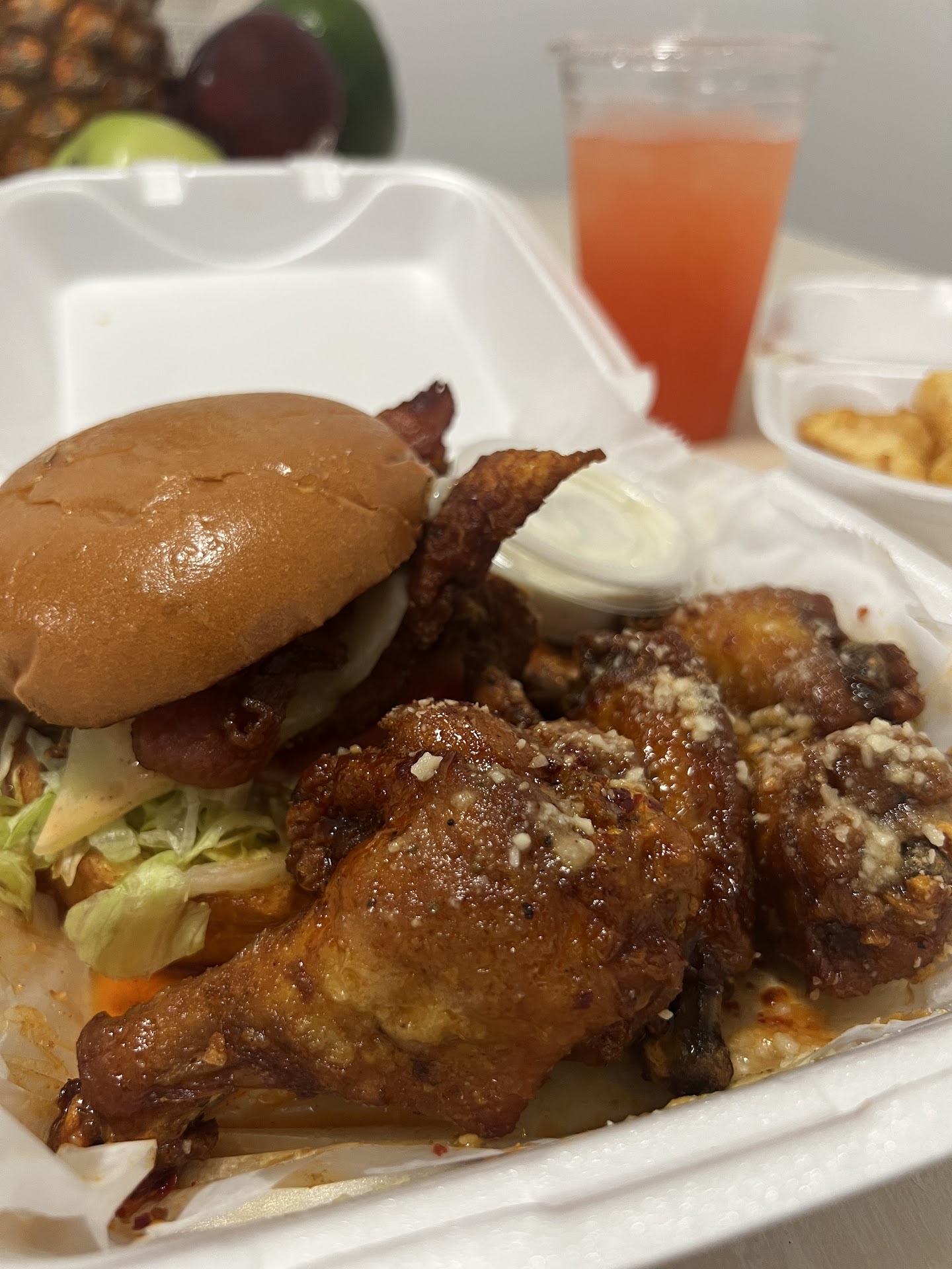 I got the 10 wings with Hot Honey Garlic and Garlic Parmesan, and as a self-declared Wing Connoisseurā¢, Iām telling you: these wings are next level!!! Light, crispy, JUICY, and full of flavor without being drowned in sauce or battered to death. You can feel the love and skill that went into these bad boys.