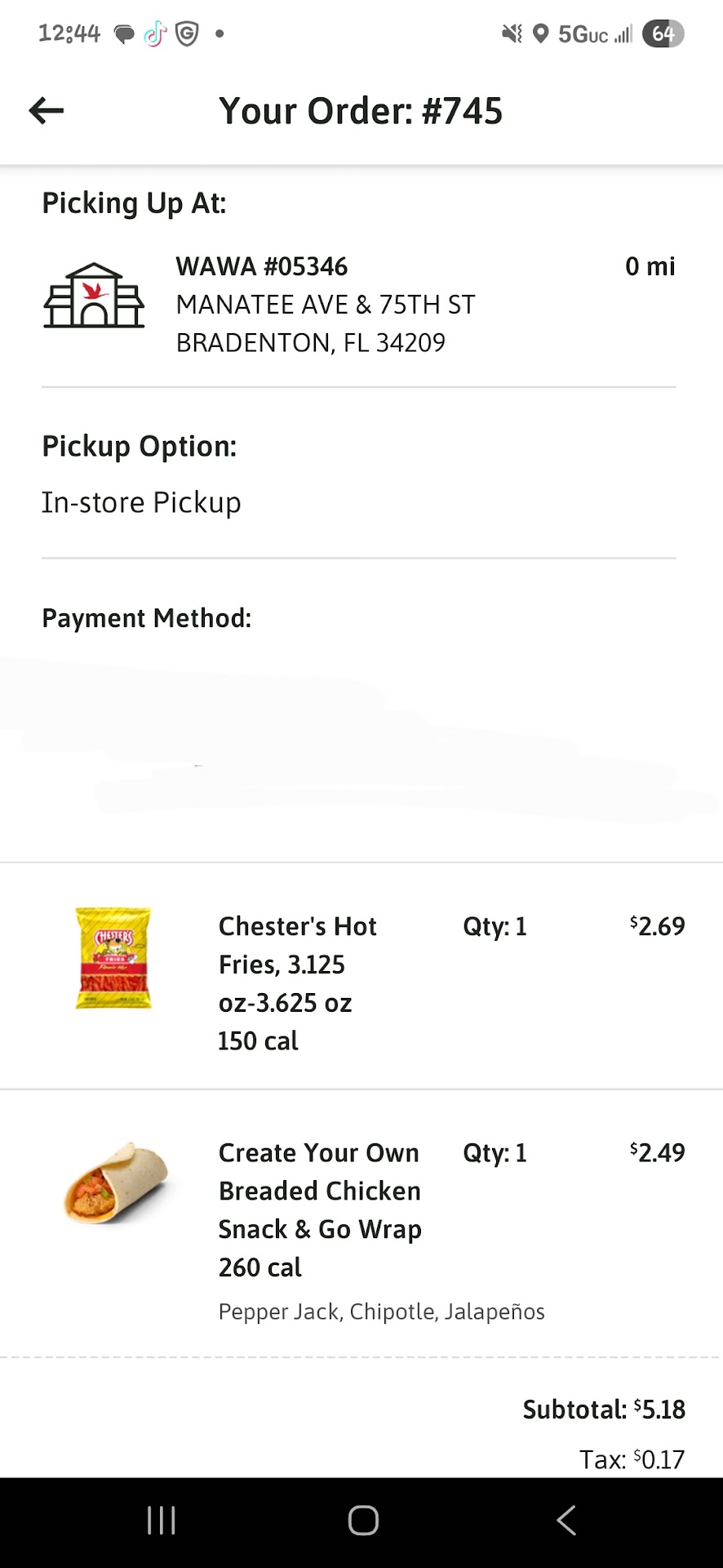 Read moreLet me start by saying that I go in very early in the morning when no where else is open on this side of Bradenton. Think 4:30 am or earlier. The food is good and the staff is as friendly as can be expected. However wether it is due to poor managerial decisions at the store level, district level or corporate level if you order you can regularly expect them to not even start preparing your order because “some people don’t come in to pick up their orders” which ironically has made me have to leave before my order has been made and call Wawa support to be refunded so I can make it to work on time. I do not blame the staff there at all as they did not make the decision and are just doing their jobs but out of all the seemingly store level policies I’ve experienced at the dozens of Wawa locations I’ve been to this is the only one this is the one that is most consistently annoying and problem causing. It would seem that this policy would be the cause of more problems that the solution to them the store cannot reasonably be held responsible for someone not picking up their order so much as it can for the order being tremendously late when ordered ahead of time- like I always do via the app. Even still with this being not even my 5th time having an issue like this (way more times) I will continue to come to this location if only by necessity seeing as how the only other stores open before 5am are fast food restaurants 8 miles out of my way or other Wawa locations 4 miles...