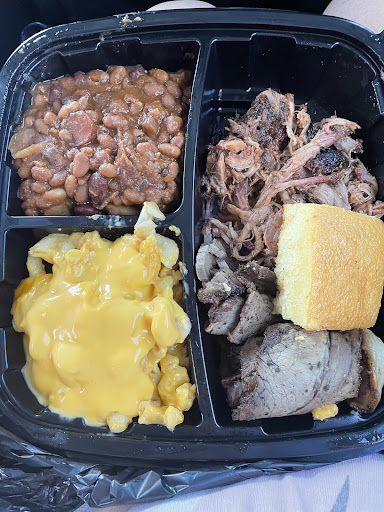 The last trip here we got ribs, which werenāt memorable to us so we didnāt order those again. We also ordered the brisket and pulled pork combo with 2 sides: Mac n cheese and baked beans with corn bread. Was it bad, no, but itās not something I enjoyed for $19. 2/5 overall, but let me better explain. Brisket: 1/5 The brisket not only lacked seasoning/flavor, but was try and was pretty fatty. Iād suspect that they cook it hot and fast, rather than low and slow. With the amount of fat on it, I would have also suspected it to be more moist, but it was not. It didnāt pull apart nice and took some effort to chew. I like flavorful brisket thatās adequately trimmed to keep some fat on to help with the cooking process. This was over cooked and dry and not on my list to order again. Pulled pork: 4/5 it was moist, not over shredded and had a nice ratio of bbq sauce to meat. I still had to sift through bites to pull out fat. Wasnāt the best Iāve had, but I would eat it again. Baked beans: 4/5 I was pleasantly shocked how much I liked the beans. I donāt often get baked beans because they are drenched in too much sugar. This was not the case, these were a nice side that didnāt make me feel like I was eating dessert and the overall flavor was good. There was a mix of maybe 3 different beans, bacon, and maybe sausage or hot dog? Not sure but it was good side dish. Mac and cheese: 1/5 thereās no shame in people eating boxed Mac n cheese but we only ever make homemade Mac and cheese and itās better than anything Iād ever get out to eat so I know I shouldnāt bother getting it when I order out. The noodle was undercooked, had a chew to it, and had processed cheese all in it and topped on it. Tasted just like the Kraft Mac n cheese youād buy in the box. Itās not for me and this spot could benefit from making there own with a homemade cheese sauce, it makes the world of difference. Corn bread: 3/5 it was okay. Not super moist but not dry. Also not overly sweet, but I didnāt love it.