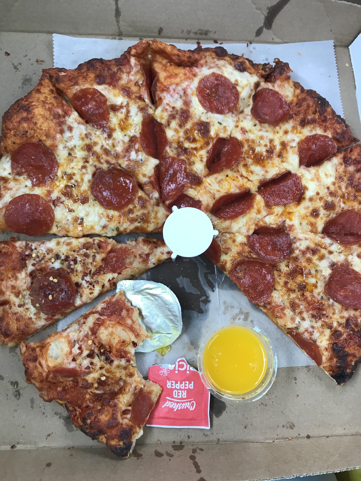 I usually don't give bad reviews however, tonight I was a bit disappointed with the pizza we got. My husband wanted to get an Aldis pizza for dinner, but after traveling all day I didn't want to go into the store, heat up the oven and wait so....I called Foxs when we got closer to home. I ordered a large with pepperoni, mushrooms, sausage, green peppers and onions. I believe that's a supreme. What we got was pepperoni slices, smaller cut up pepperoni, italian sausage, and ham, Ithink that's a delux. A large pizza has 10 slices, ours had 8. I'm giving a 3 star because of the mess up. I picked off ham, I don't like ham on pizza, and had 2 slices. The pizza was good, just not what I ordered. The young man in the phone was really nice and my husband said they were really friendly. None of us are perfect and we all make mistakes, I'm just bummed they messed up the order. I didn't enjoy it as much as I had hoped. That being said, I'm sure we will order...