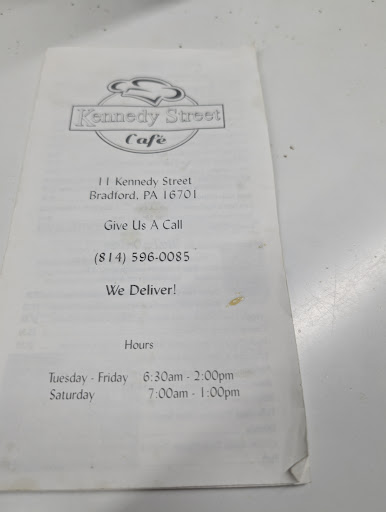 I was in Bradford, PA early on a Saturday morning. I was in the mood for a quality breakfast & coffee. I happened upon The Kennedy St. Cafè, and figured I’d give it a chance. Upon entering I was immediately struck by its down home small town vibe. You could just tell this is the restaurant that all the locals dine at. This was confirmed when a grandma & her grandson walk in, looked at me, then sat at the counter. They informed the waitress that “someone was at their table”. The interior reminded me of a small Pennsylvania coal or steel town. It was absolutely quaint & cozy for sure. Your seating options are going to be table or counter, I chose a table. My waitress was cordial & polite, bringing over my cup of coffee & taking my order. The menu is exactly what you think it is, good ol’ down home comfort foods. I got the bacon, cheese & mushroom omelet with home fries & sour dough toast. I watched as it was cooked on a nice big greasy grill, I swear it doesn’t get any better than that. My meal and coffee were great, loved the small town dinner vibe & my overall experience here was good. I strongly recommend this place if you’re ever in...