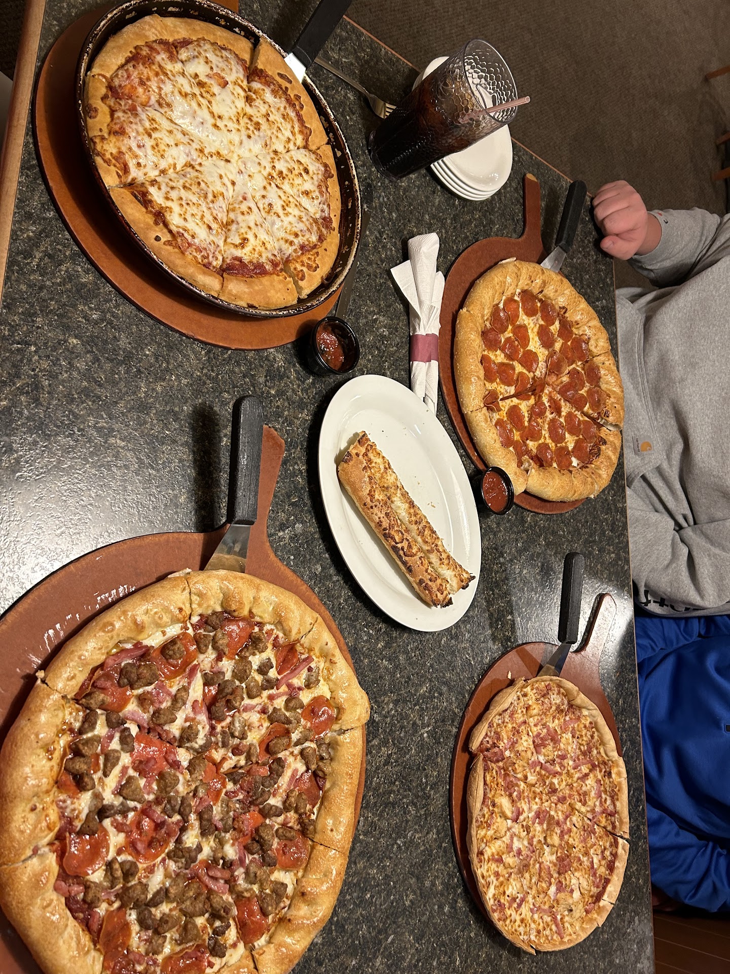 Read moreWe ordered two pizzas, taco and stuffed crust, family order of bread sticks and three drinks. The drinks tasted terrible either the water is bad or the machine needs cleaned. Then our waitress forgot to put in the order for our bread sticks. When we got our pizza we got the wrong toppings on the taco pizza and sent it back. Then our bread sticks came and it was a small order of cheese sticks, wrong again. A couple of minutes later our pizza comes back and it is the same pizza with the correct toppings added on top of the old pizza. When confronted about the pizza the waitress denied anything was wrong and looked at me like I was a jerk, even after all her screw ups. DO NOT GO HERE. YOU WILL BE...