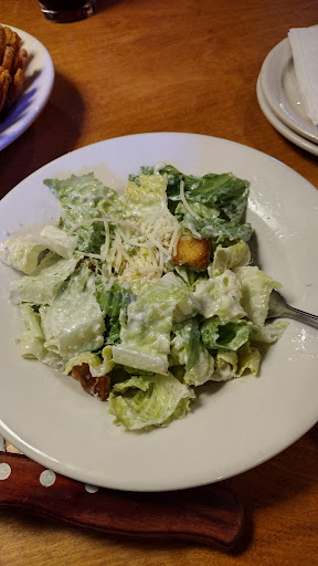 As for the food, it was impeccable! We started with the Cactus Blossom onion and a combo platter featuring boneless wings, potato skins, and fried pickles. The boneless wings had a bit more kick than we expected, even though we ordered mild, but everything was so delicious that it didn’t matter. For our main courses, we enjoyed filet medallions with corn, rice, and American fries, along with a beautiful salmon Caesar salad and a baked potato. Everything was cooked and seasoned to perfection!
