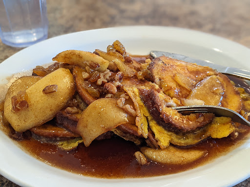 Ā Ā Ā Read moreThe place was lovely. When I first walked in I was sure Iād love it. The server was friendly. Took our order and served our drinks promptly. I ordered the banana fosters waffle. I asked if I could get it without pecans. I do not care for them. She said, āAbsolutely, you get things exactly how you want here!ā They were quite busy so it took a bit of time to get the food. When it arrived there were a LOT of pecans on it. I began picking them off (I was hungry and on a time crunch) so I could eat it. The bananas were also super mushy. I expected them to be softer than a fresh banana (Iāve had bananas foster other places) but these were extreme to me. I ended up scraping everything off the waffle and eating it as is. The waffle by itself was delicious! The next time I saw the server was when she walked by and slapped the bill on the table. She glanced at my plate, I thought she was going to say something about the pecans being in a huge pile but she walked on. I laid my card on the bill and when she noticed that she told me I could pay up front. My daughter asked for a box for her leftovers. She said, āabsolutely!ā We waited almost 10 minutes. I went up to pay and use the restroom. The gal at the register asked me how everything was. I told her my experience in a kind way. She apologized and said next time to ask to have it remade. I would have if I had seen the server again in a reasonable amount of time. Our drinks were never even refilled. I was bummed because I had high hopes for this place. There wonāt be a next time. I donāt live there, my daughter does. She hadnāt tried that place before either. There are way too many options in the town for me to go back there when I visit again. I should have gone where she suggested in the first place. My daughter said her food was good so Iām...