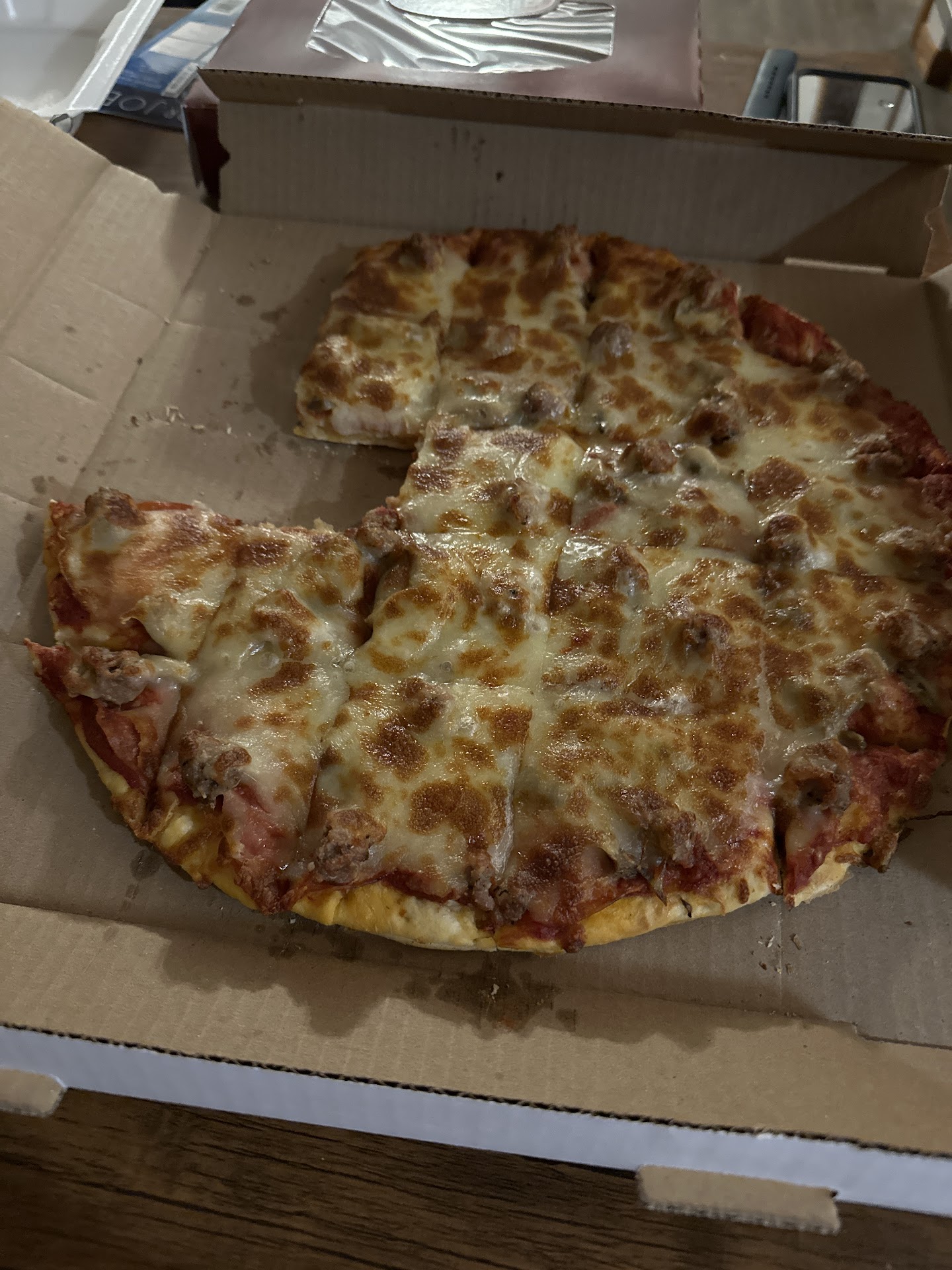 Read moreThis is the third time with in 2 months something has gone ridiculously wrong first time wrong toppings and the dough want cooked second time I ordered delivery for my boyfriend and son and was told about 45 minutes but it never came. Called back and said where is the pizza and they said they called and no one answered... Bull crap... Plus isn't the driver supposed to come up to the door and knock I mean it is delivery... The girl on the phone was rather rude and told me that she wasnt going to remake them and send them out!!! Now the third time (I always do the three strikes your out policy) last night went in for a beer and to get a sausage mushroom and onion and a order of garlic cheesy bread... Ok the bartender first off doesn't know how to pour a beer cause it was over a quarter full of head and she would have rather been in the back talking then up front with the full bar she had... So then I get our pizza and cheese bread get home and the pizza is virtually white and not cut ... Put my hand over the pizza and its not even hot.... Then opened the cheesy bread and I was just pieces with half melted cheese on them... Just so disappointed in this location I feel like something is always wrong here. Wont be going back to this one would rather drive to Cambridge or...
