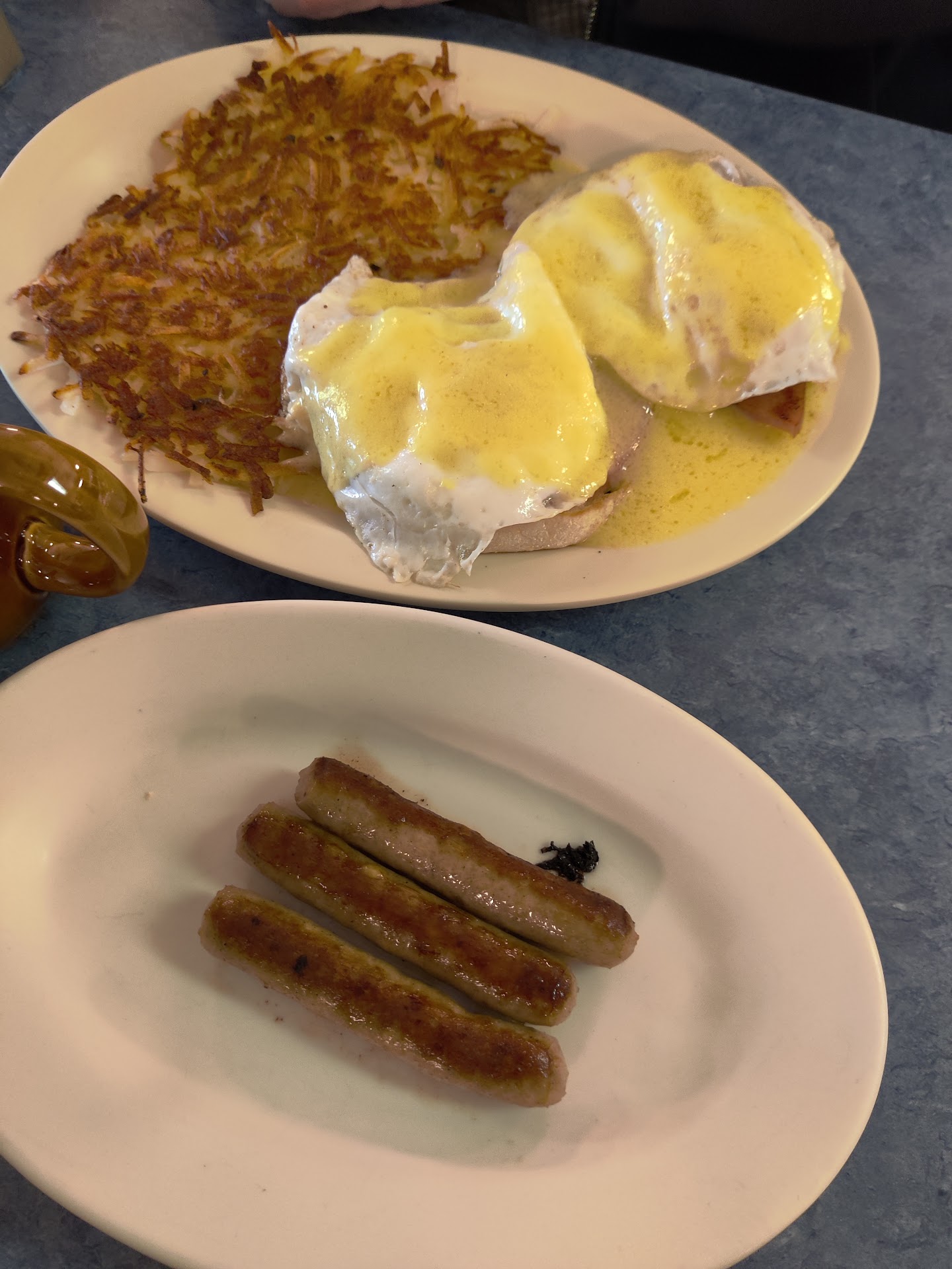 Read moreServer came to our table soon after sitting down. We stated we were ready to order since in a bit of a hurry. She insisted on getting our waters first. Then brought others drinks, rang up an order, took at least 3 other orders one of whom walked in after us. We had to ask a different server to take our order. Then decided to just ask for it to go and ring us up since by this time we had wasted too much time waiting to place order. The gal who took our order rang us up and I walked back to table to wait for our order. She came over with receipt asking me to clarify my amount which I did (no tip). I then asked for plastic forks since we had to get our food to go and she pretty much shoved them at me and walked away. She was clearly pissed that we didn't tip. And this used to be our favorite place to go for breakfast. Luckily, we have a new...
