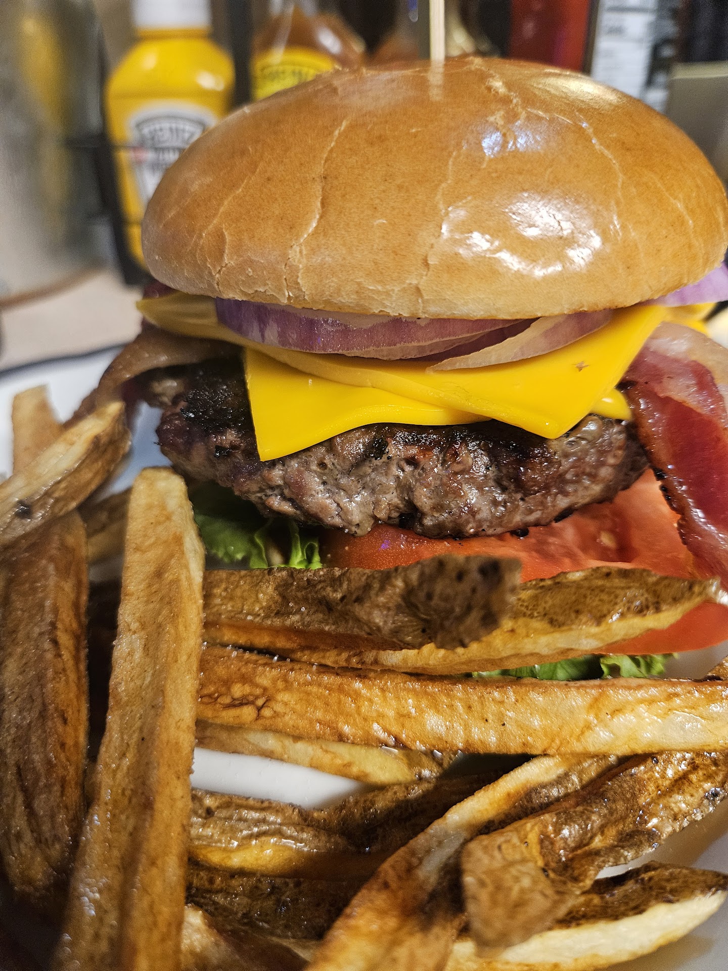 It's a neat place with all the decor. I'm wondering if the people rating it 4 stars and above are sheltered eaters or they are basing it off of not many choices near by. The food was subpar. I mean edible but not much above. The empty parking lot should have been a clue. The steak sandwich AKA shoe leather served on an oversized dry bun was less than desirable. My child had to order a $12 cheeseburger that looked like a burnt thick piece of dried jerky. The only thing I actually enjoyed was the top fuel loaded fries. Won't stop here again.