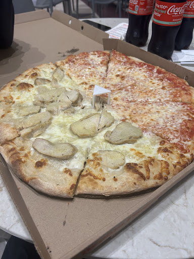 I ordered my pizza as I always do at any pizza place or Regina: half plain cheese, the other half with ranch sauce and chicken, and I asked for a soda on the side. Explaining this was harder than my 12-hour shift. Then, I was told that there was no ranch sauce or anything similar, and they made a garlic sauce and chicken pizza. Have you ever seen such a cut-up chicken pizza in your life?