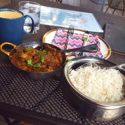 FEB.2023 UPDATE 4/5 stars: Went back for a quick bite after seeing a movie (this place really is in a prime spot for business, can't deny that), sat at the bar, and ordered the Spicy Pork entrée, Garlic Naan, and the Yak Butter Tea. Each was tasty, especially the naan and Yak Butter Tea (I almost considered buying another cup). The pork was more spice than flavor, in my opinion, but still good. I'm not sure what else it needed, but I felt it needed just a little more of something to give it extra zing. They also gave me this free appetizer, consisting of a ring of fried dough on a plate which, paired with the provided side, was tasty, if nothing else. I liked the meal a little better this time than my last visit, but still think there are better restaurants out there. Added new pics below.