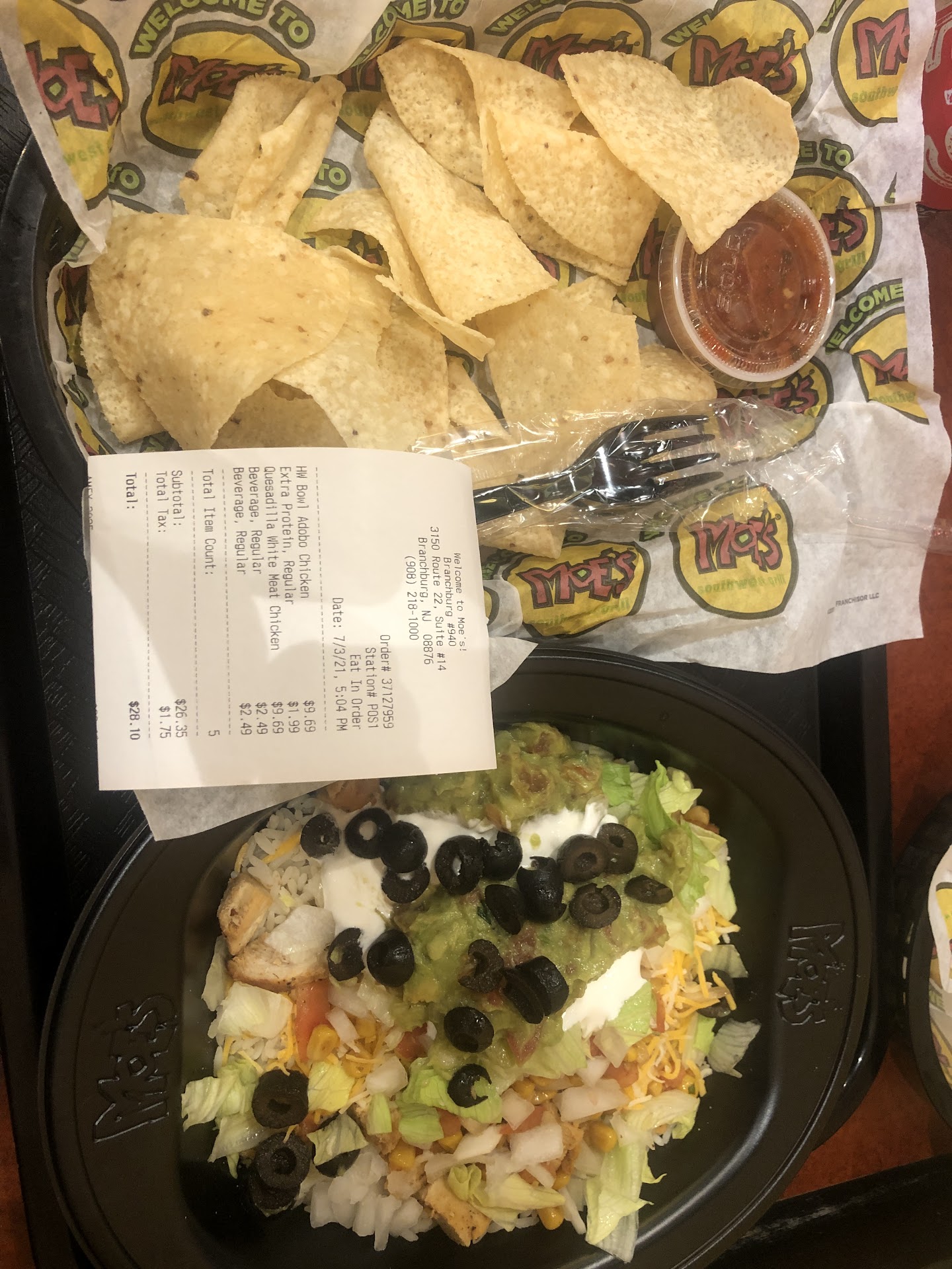 The other thing I have to say Moe's beats the other places with is their tortilla chips - super light, fresh made, just a smattering of salt, & crispy as heck.