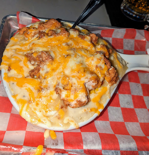 Read moreFirst time I went my wife got the BBQ Mac and cheese which tasted exactly like dish soap. I got a burger and asked for it medium rare and the waitress put down rare and my burger looked like it was put on for maybe 1 minute a side it was very raw. They didn't charge my wife but said they had to charge me because I took to many bites (3 bites). But they gave us a gift card for the value of my Wife's meal. The general manger also told us that its impossible for the mac and cheese to taste like soap and that they've sold so many of them today. We asked her to taste it since my wife only took 2 bites one on the edge and in the middle. But she refused which i get it she doesnt know us but dont say that it cant taste like soap and make us seem like we are trying to scam them. We went back about a month later hoping for better results. The 2nd time the food was better. I got chicken tenders and my wife got a salad (we played it safe). But we were there for 2 hours on a Wednesday night. The restaurant wasnt that packed maybe at %50 capacity. The waitress was to busy talking to other wait staff and the cooks or cleaning behind the bar which we arrived at 7pm. The place wasn't very packed. But they are very pricey it's about 20 bucks for any meal with fries on the low end. It's a very weird place being called meachs pit stop and having everything dirty bike themed for menu names but is a slightly nice restaurant feel on the inside but also has a full bar with mixed slushy cocktail machines like a 7/11. It's a very confusing atmosphere. This was about 2 months after they opened we had this experience. We debated on making a post but other people that we know have had similar...