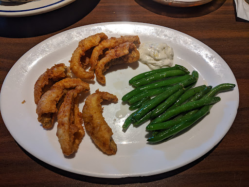 Had the smoked brisket French dip; hubby had a lemon-dill seafood dish (shrimp, salmon, & mahi mahi); kids both had a chicken tender platter; & we shared the fried pickle appetizer.
