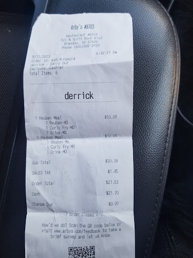 Read moreBy far the worst experience I’ve ever had at an Arby’s. We were in town for a baseball tournament and were hungry between games. I ran to pick up food and bring back to the ball diamonds. Ordered two chicken sandwich meals and a slider. Got my drinks and a bag, the lady said thanks and shut the window. I failed to check the bag, because I figured 3 sandwiches should be too difficult. Well got all the way back to the diamonds and no chicken sandwiches. I called and they asked if I could come back, I didn’t have time to drive back before the game and asked if they would just refund to my card. They said they couldn’t do that but would send me coupons for two free meals. I said fine and gave my address. Still haven’t received...